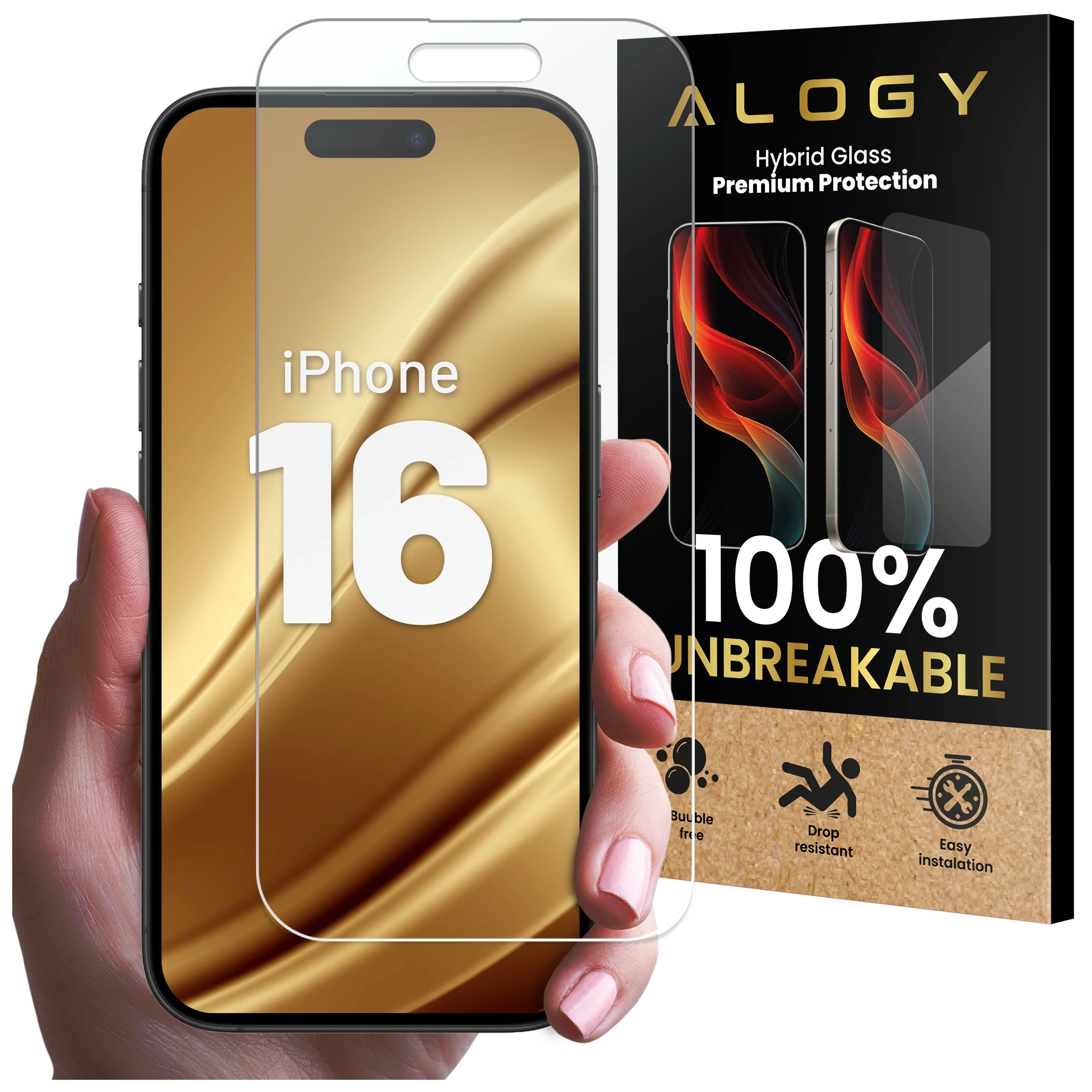 „BRAPPROOF“-Glas für Apple iPhone 16 Hybrid: Alogy Flexi Full Glass 9H, flach für den gesamten Bildschirm x 1