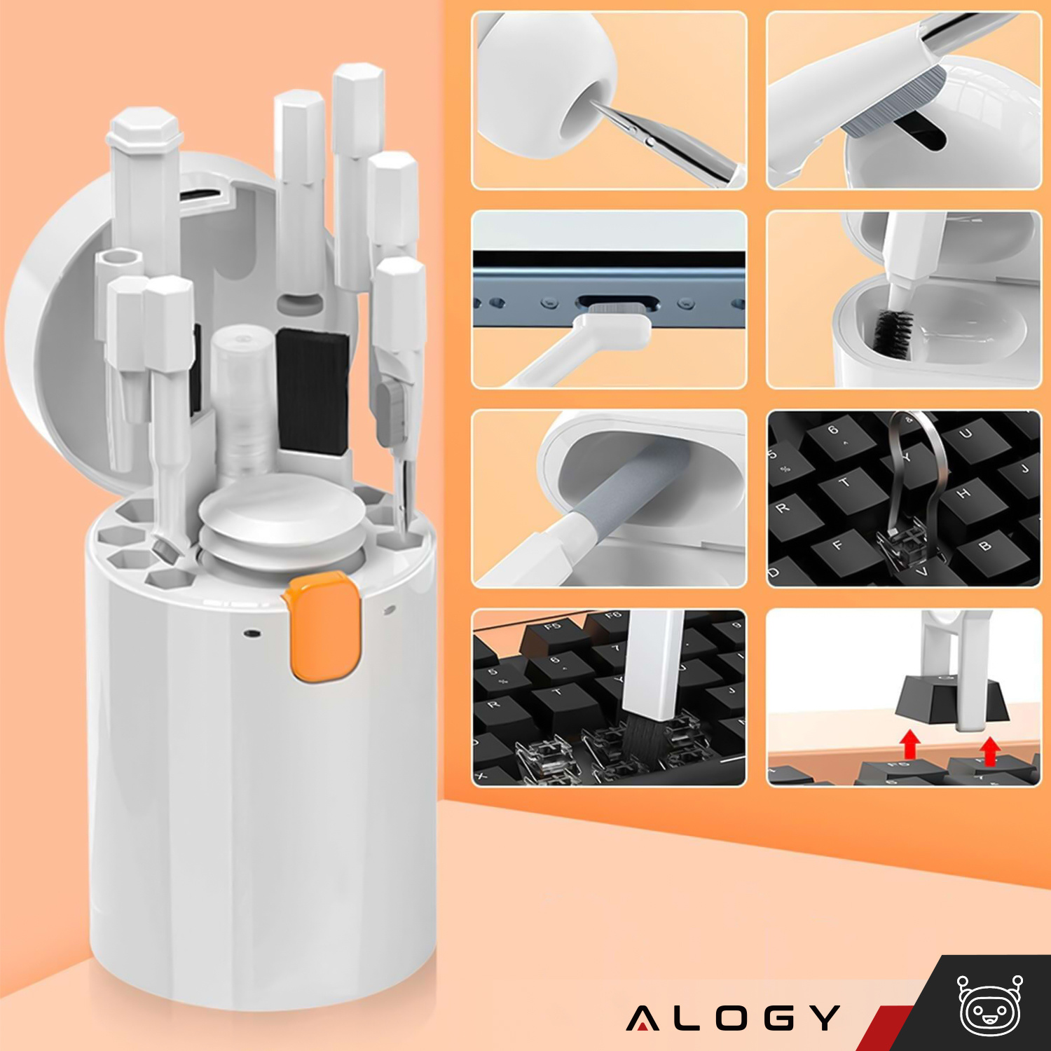 20in1 Reinigungsset zum Reinigen der Telefontastatur, Kopfhörer, Multifunktionsreiniger, Bürste, Alogy Set, weiß x 1