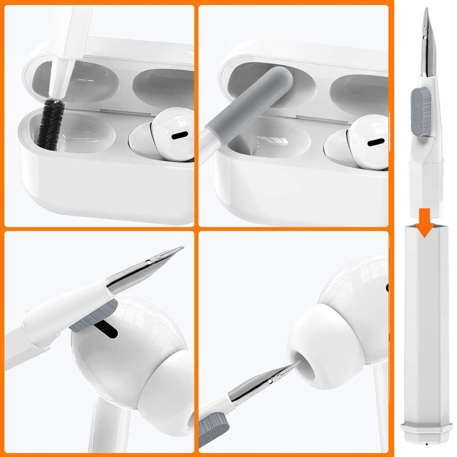 Es ermöglicht eine präzise Reinigung in den Ritzen der Kopfhörer, erreicht schwer zugängliche Stellen und entfernt effektiv Schmutz.