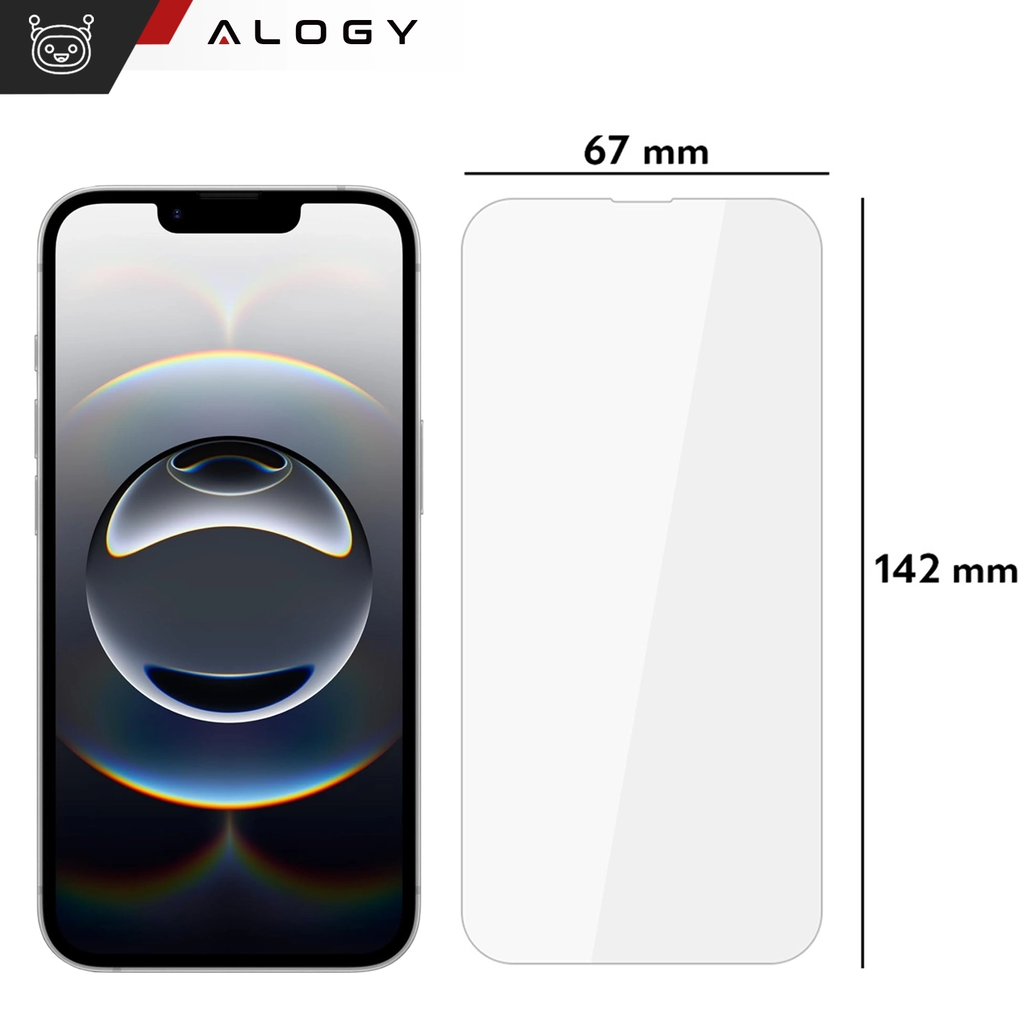 Das gehärtete Glas Alogy 9H für Apple iPhone 13, iPhone 13 Pro, iPhone 14  besteht aus einem besonders strapazierfähigen Material, das einen effektiven Schutz für den Gerätebildschirm bietet. Das Glas kann Kratzer und Schäden an der Außenseite des Displays verhindern.