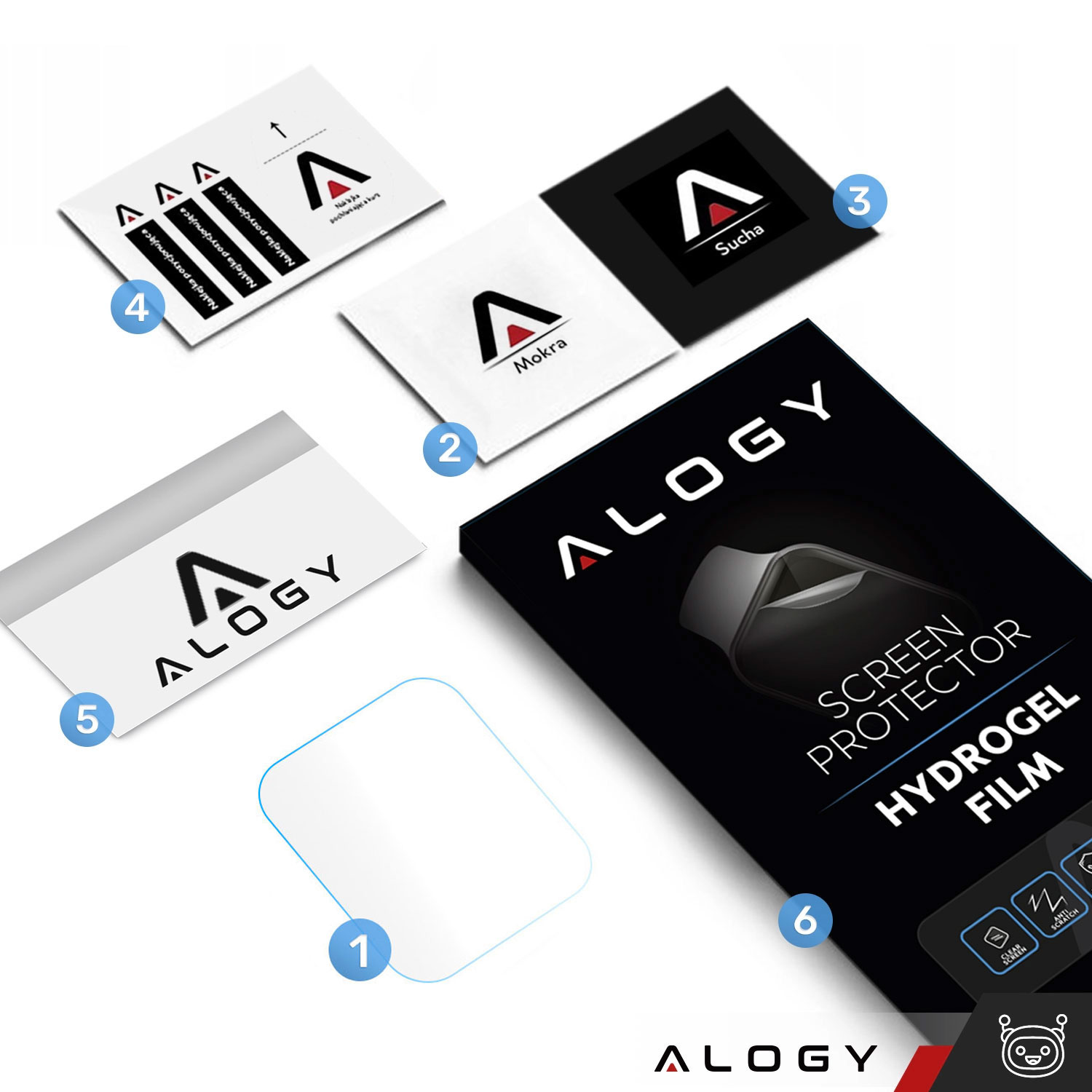 • Das Set beinhaltet: 2x Alogy-Hydrogelfolie, 2x feuchtes Tuch, 2x trockenes Tuch, 2x Aufkleberset zur Staubentfernung, 1x Rakel