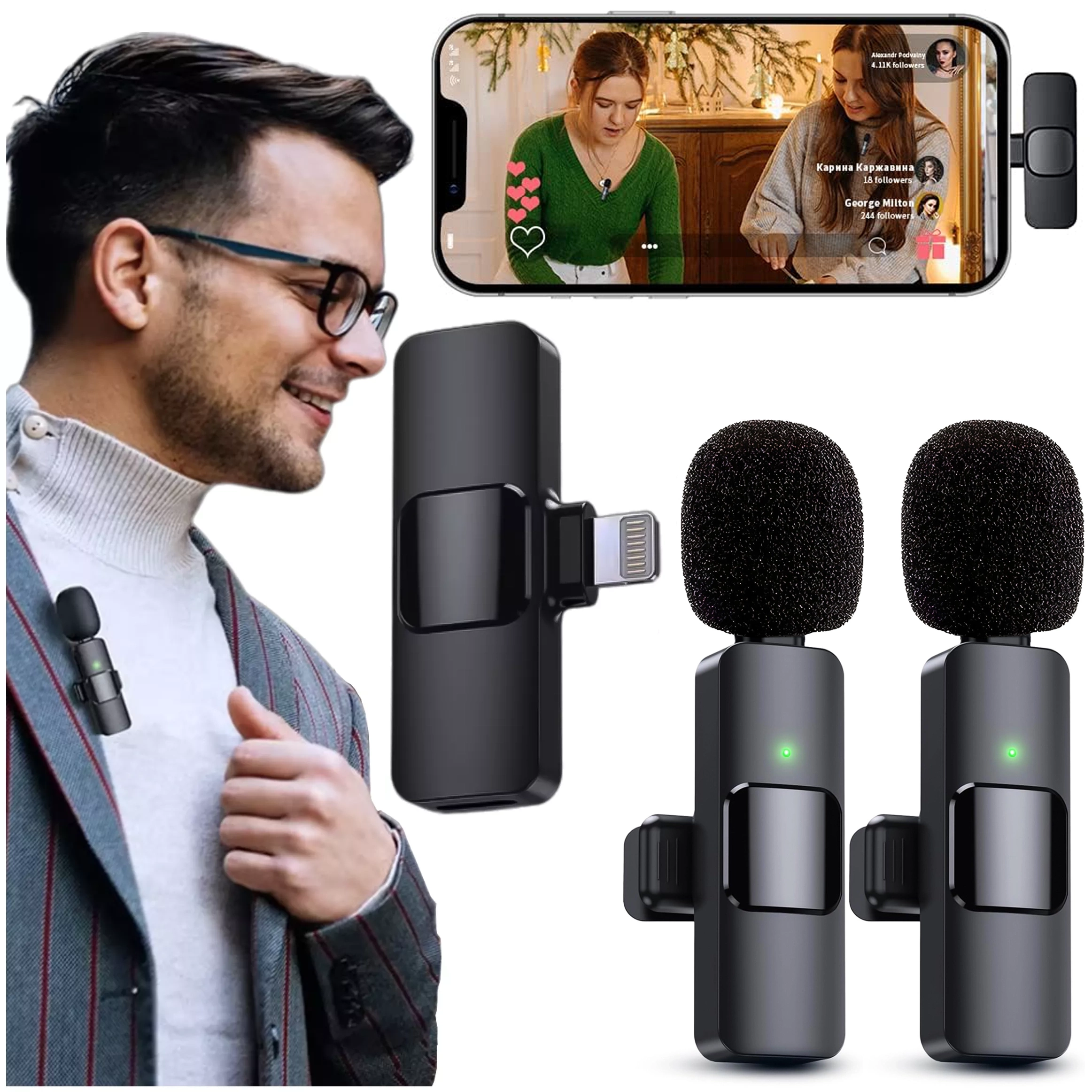 ✅ Die Mikrofone verbinden sich automatisch drahtlos mit dem Empfänger, nachdem Sie ihn an den Lightning-Anschluss Ihres iPhones oder iPads angeschlossen haben, und bieten so eine komfortable Bedienung.