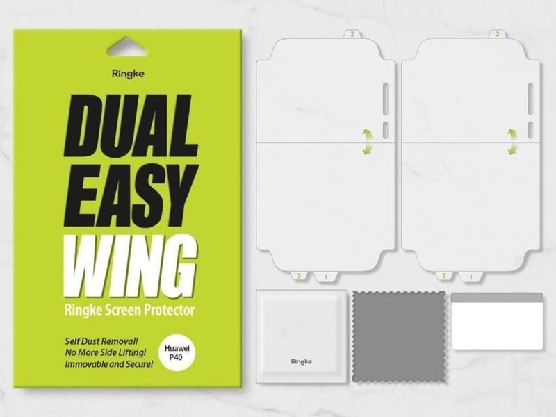 Ein Set aus zwei Schutzfolien von Ringke Dual Easy Film ist ein hochwertiges Produkt, das perfekt auf das Huawei P40 Display abgestimmt wurde . Die Firma Ringke erfüllte die Erwartungen des Kunden und patentierte ein einfaches und instinktives Installationssystem, mit dem jeder Smartphone-Benutzer die Folie selbst auf dem Bildschirm des Huawei P40 -Geräts anbringen kann .