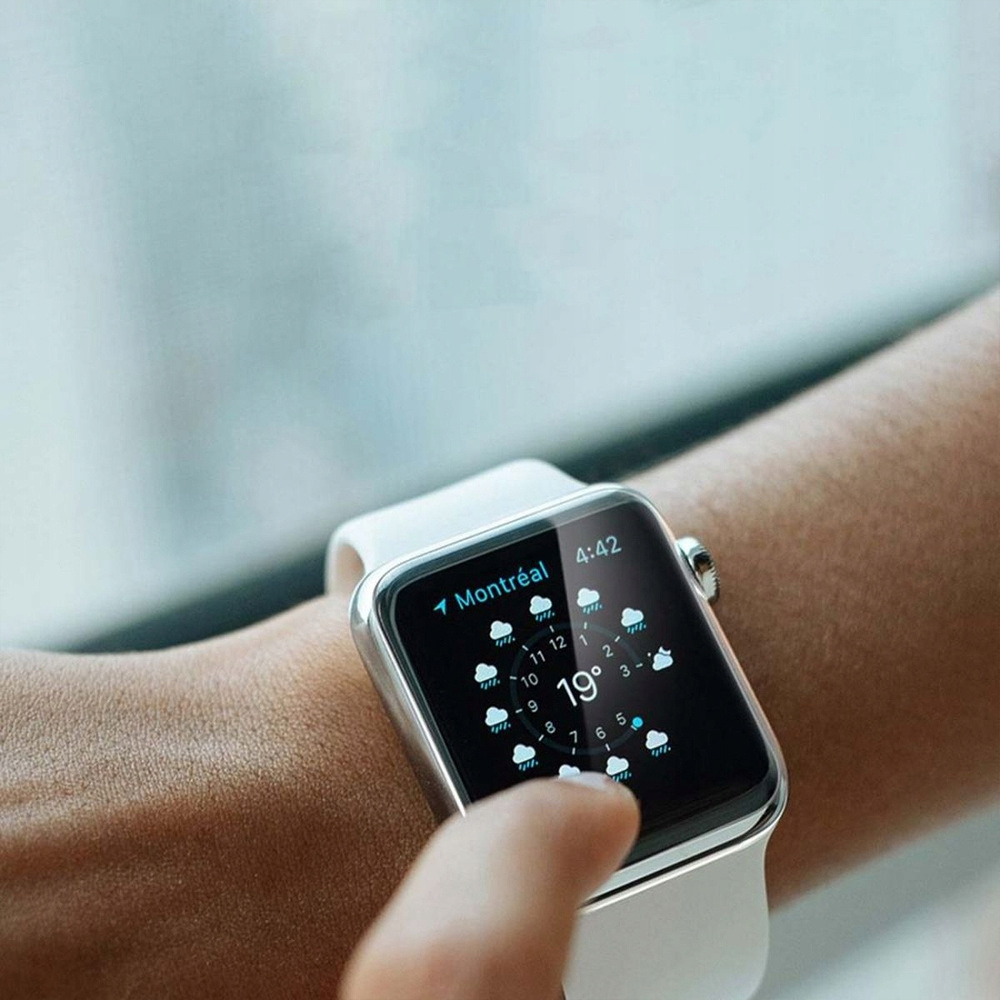 Die Folie der Marke Rock hat mehrere Schutzschichten, dank denen das Display der Apple Watch vollständig vor Kratzern, Schlieren, Schmutz und Rissen geschützt ist.