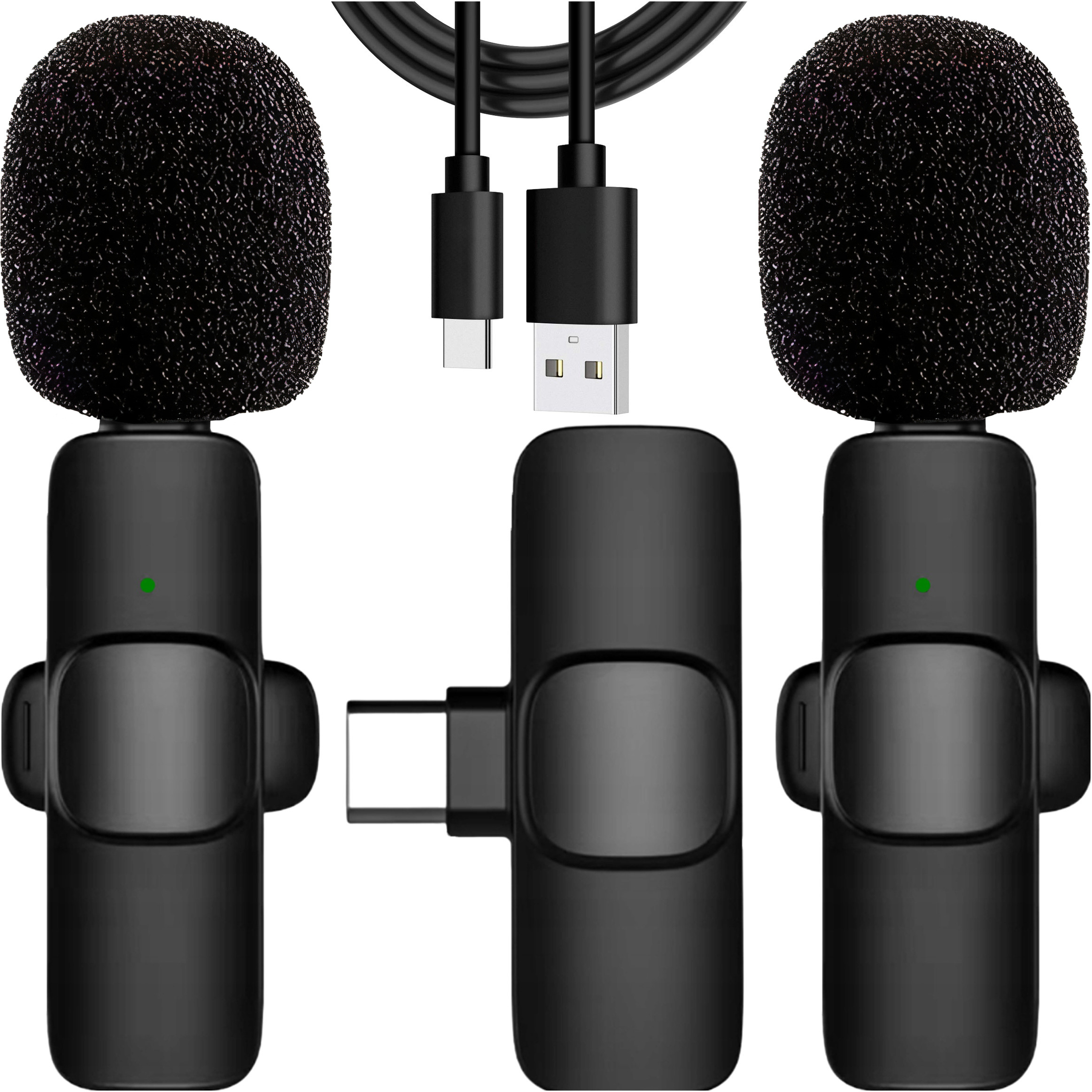 2x kabelloses USB-C Typ C Lavalier-Mikrofon Android iOS für Telefon Tablet Kleine Mikrofone Set aus zwei Mikrofonen x 1