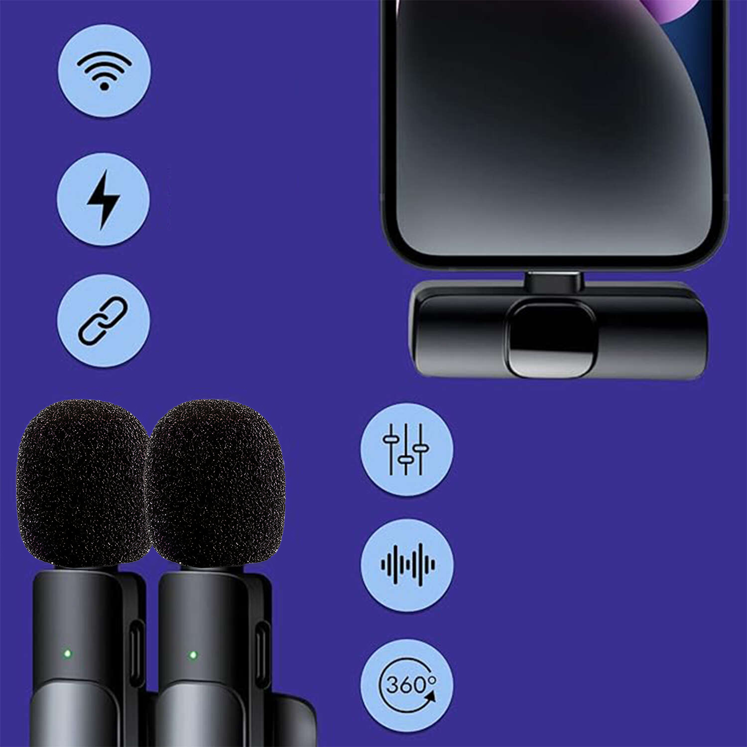 Mikrofone werden nach dem Anschließen automatisch drahtlos mit dem Empfänger verbunden Schließen Sie es an den USB-C-Typ-C-Anschluss Ihres Telefons, Smartphones oder Tablets an und bieten Sie eine bequeme Nutzung.