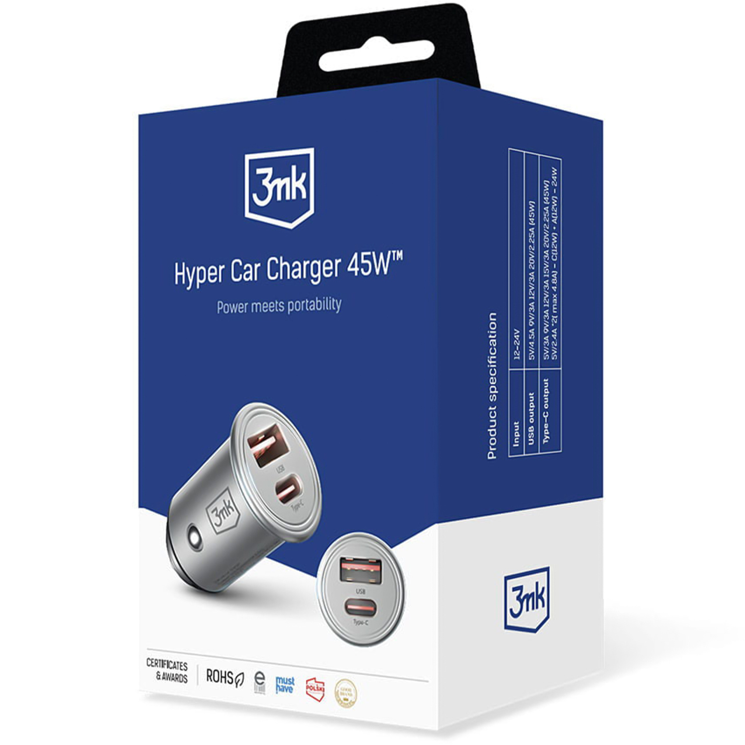45W USB-Autoladegerät USB-C Typ C schnelles 3mk Hyper Car Charger Silber x 1