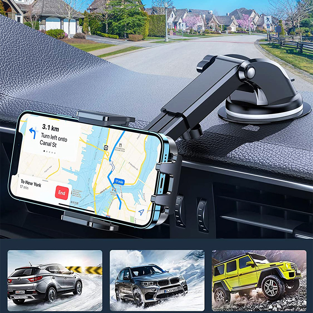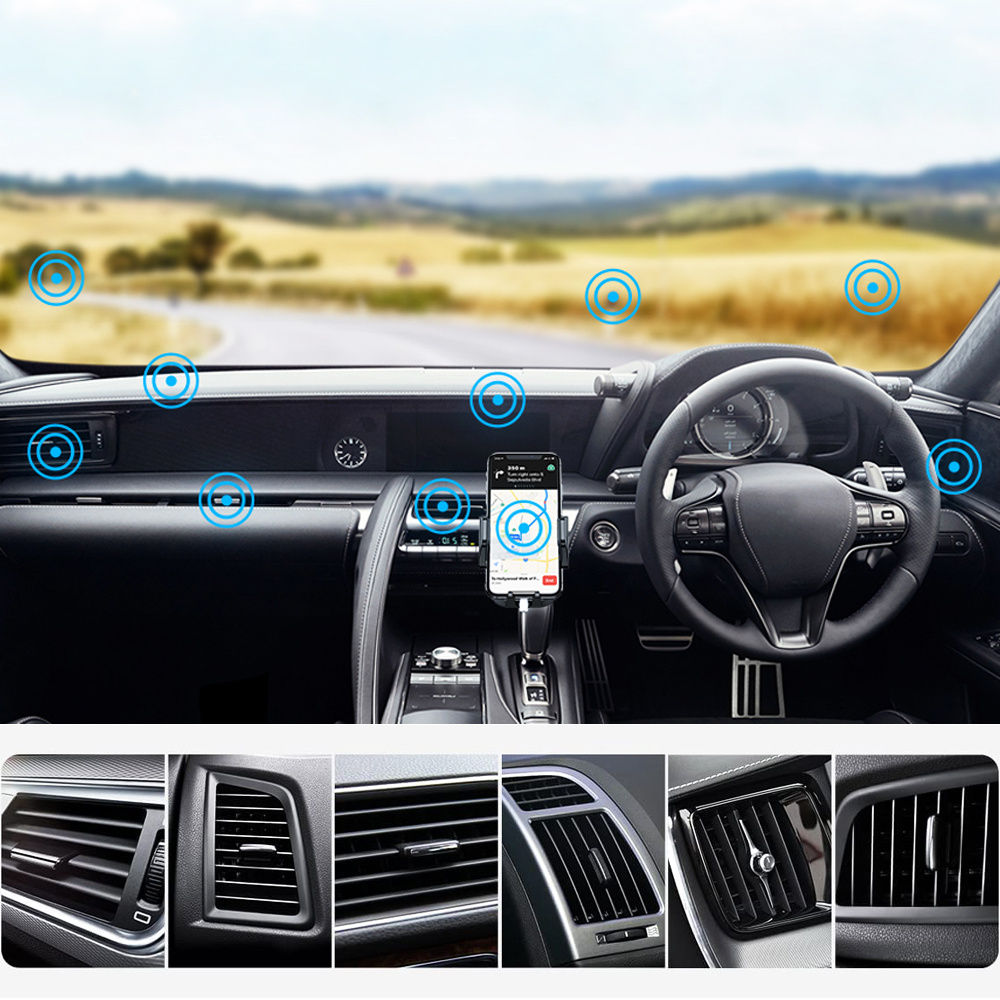 Der Halter kann einfach an der Windschutzscheibe, dem Armaturenbrett oder der Lüftungsöffnung des Autos angebracht werden. Für einen besseren Bedienkomfort ist im Set eine Halterung zur Montage am Lüftungsgitter enthalten.