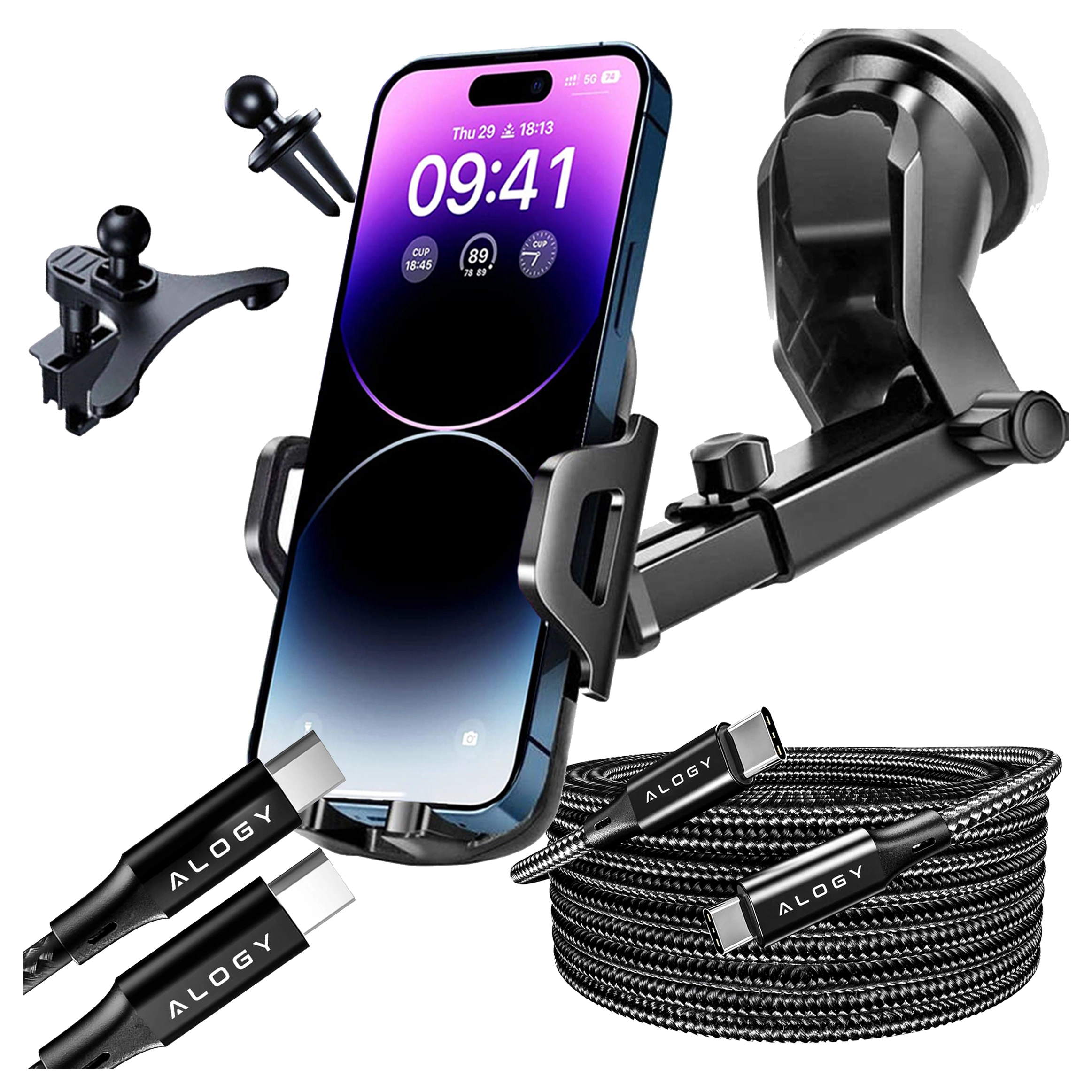 Die 3-in-1-Autohalterung der Marke Alogy zeichnet sich durch eine solide Konstruktion aus, die Stabilität und zuverlässige Installation gewährleistet . Die Halterung sorgt dafür, dass das Telefon problemlos an Ort und Stelle bleibt , selbst wenn Sie auf einer sehr holprigen Straße fahren.