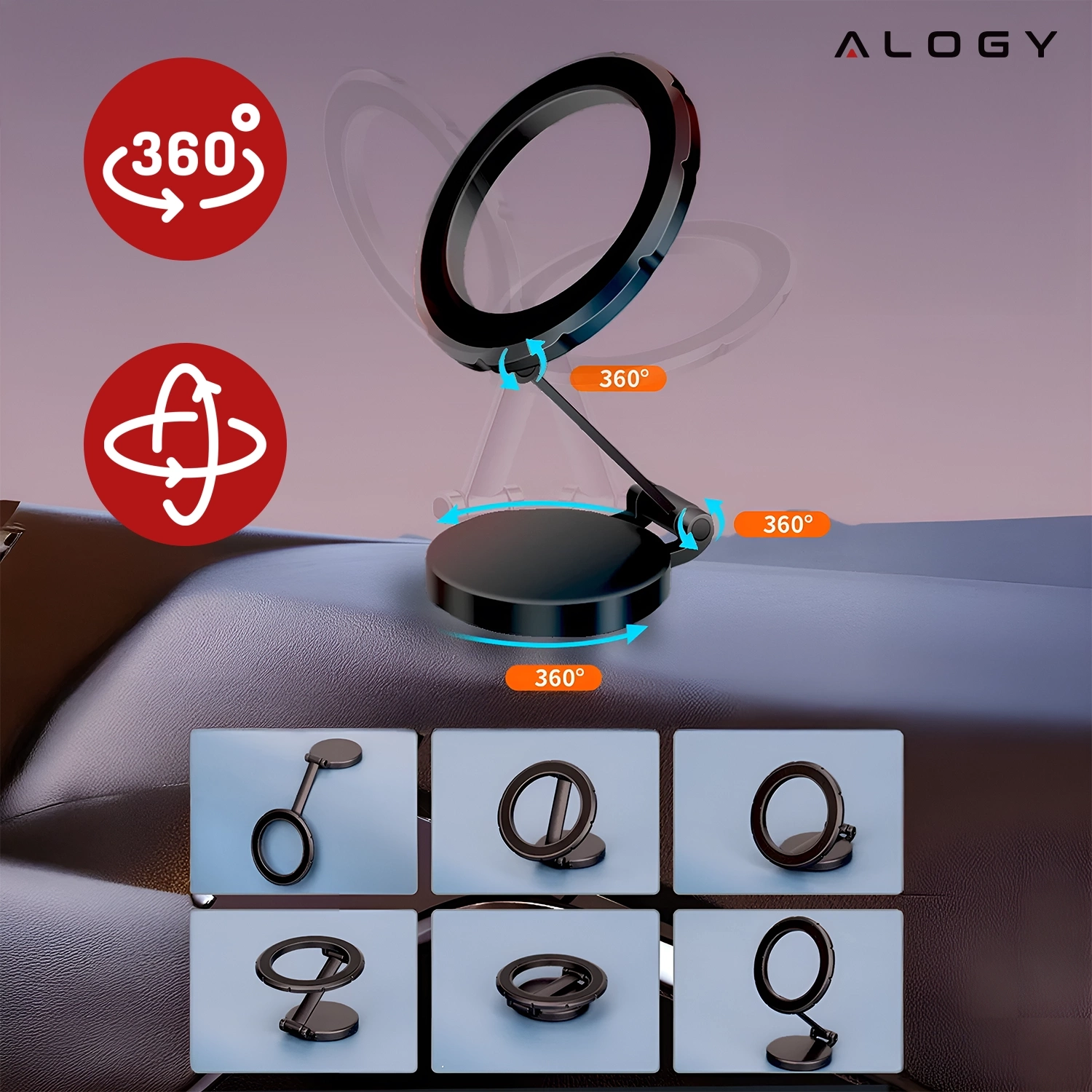 • Die Alogy MagSafe Armaturenbretthalterung zeichnet sich durch starke Magnete, 360°-Drehung und ein elegantes Design aus. Sie ist mit MagSafe-Geräten kompatibel und bietet Stabilität und Komfort während der Fahrt.