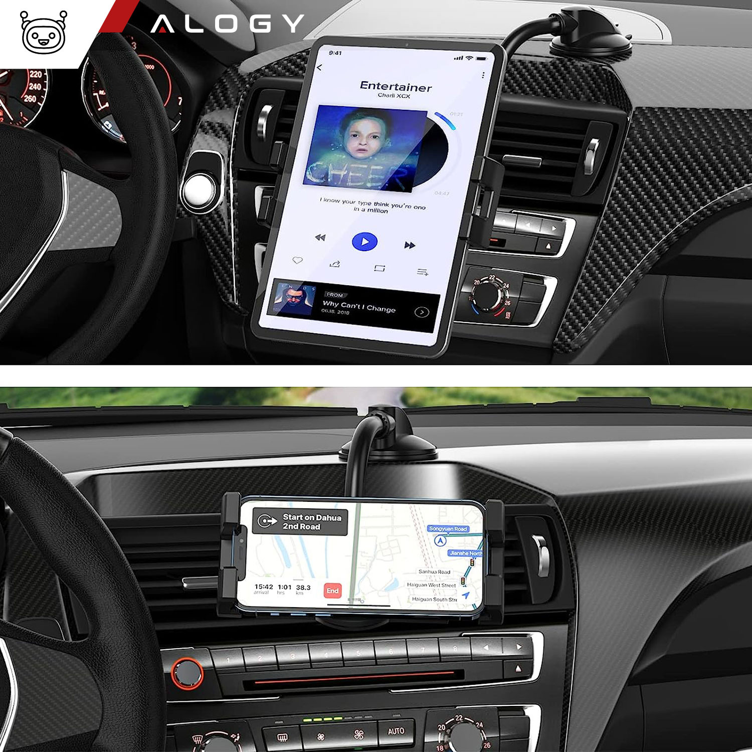 Alogy Autohalterung für Tablet-Telefon, Armaturenbrett, Windschutzscheibe für Auto mit langem Arm, 4–13 Zoll, Schwarz x 1