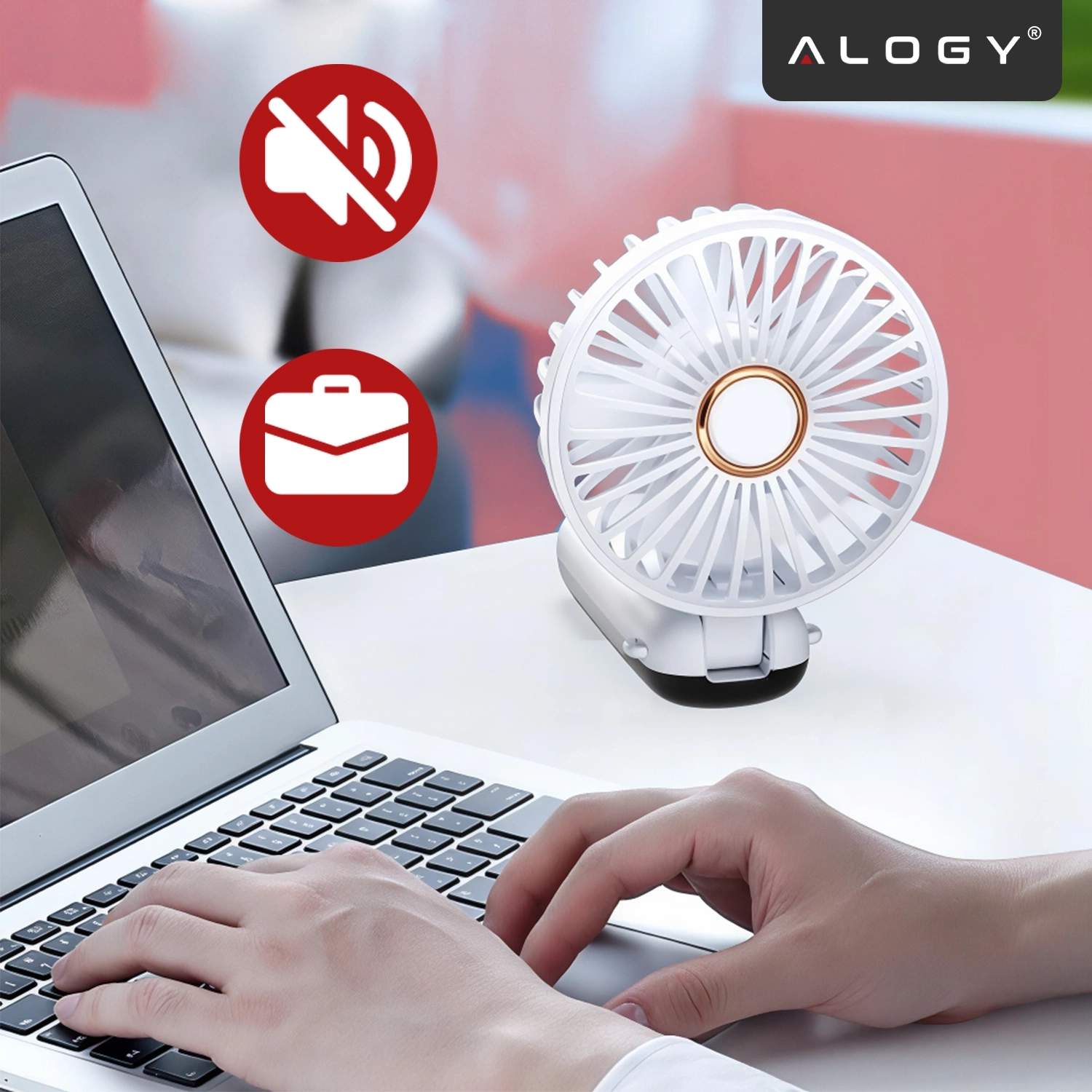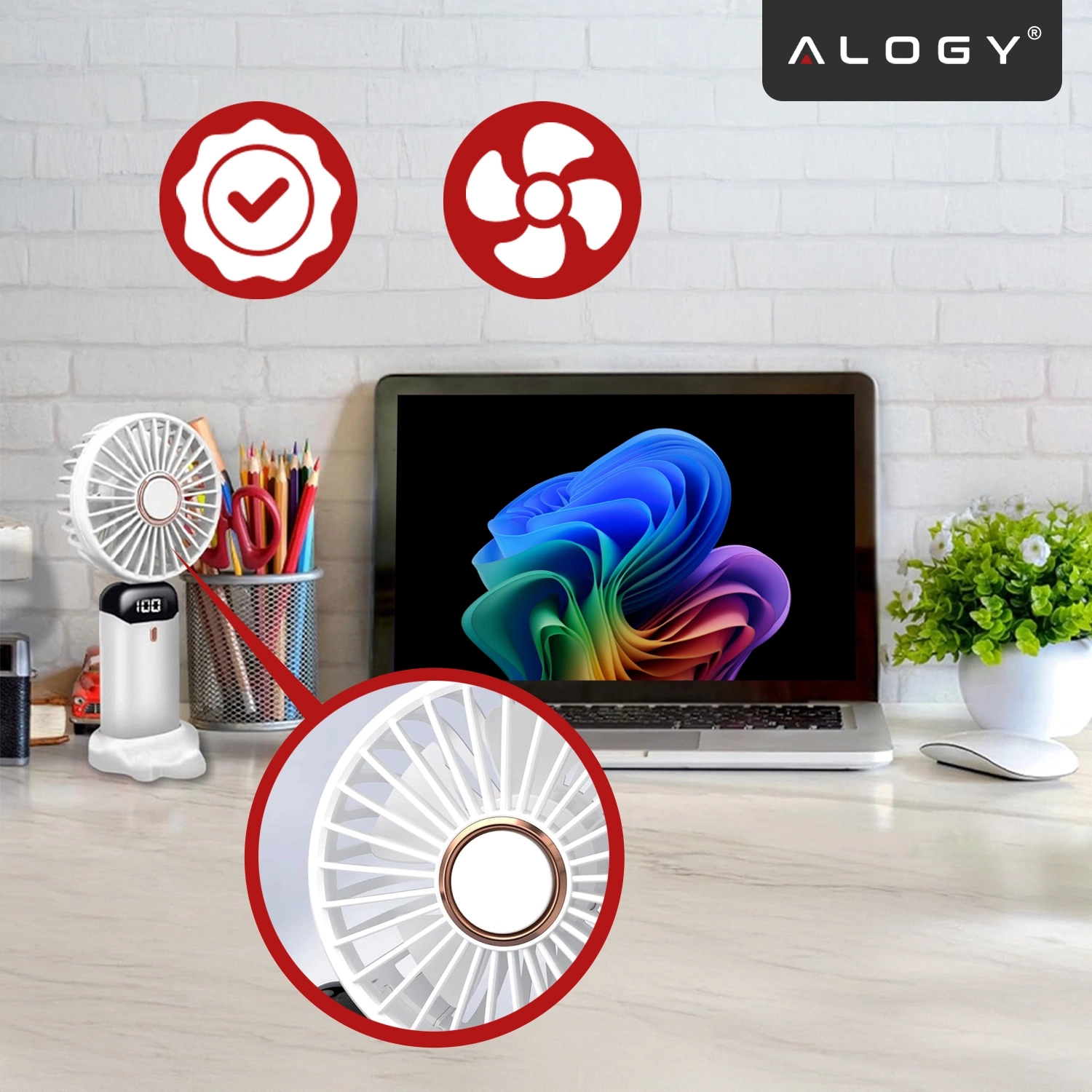 Alogy CoolBreeze™ Kabelloser, tragbarer Tischventilator mit Handyhalterung, USB-C-Ladeanschluss, 18650-Akku – Weiß x 1
