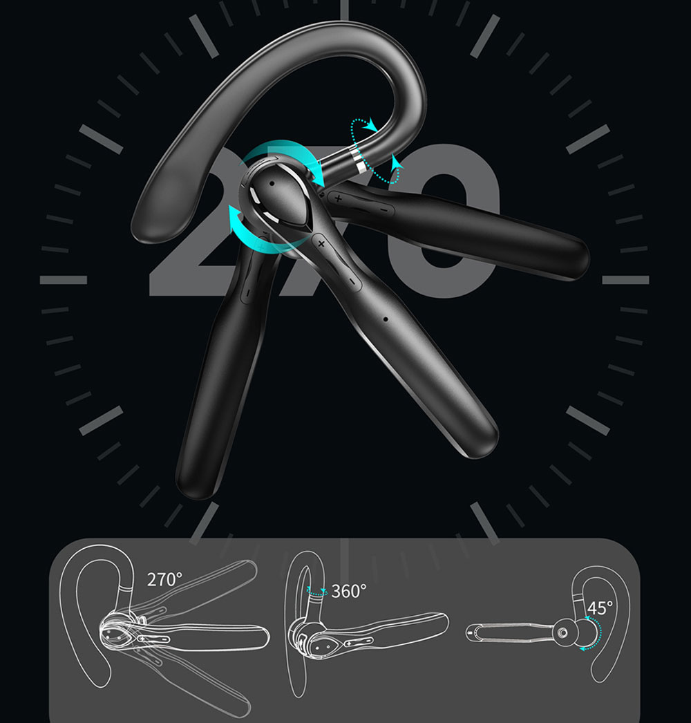 Das Gerät hat eine universelle Form, dank der es sich perfekt an jeden Ohrtyp anpasst, und dank des drehbaren Designs können wir das Mobilteil problemlos am linken und rechten Ohr tragen.