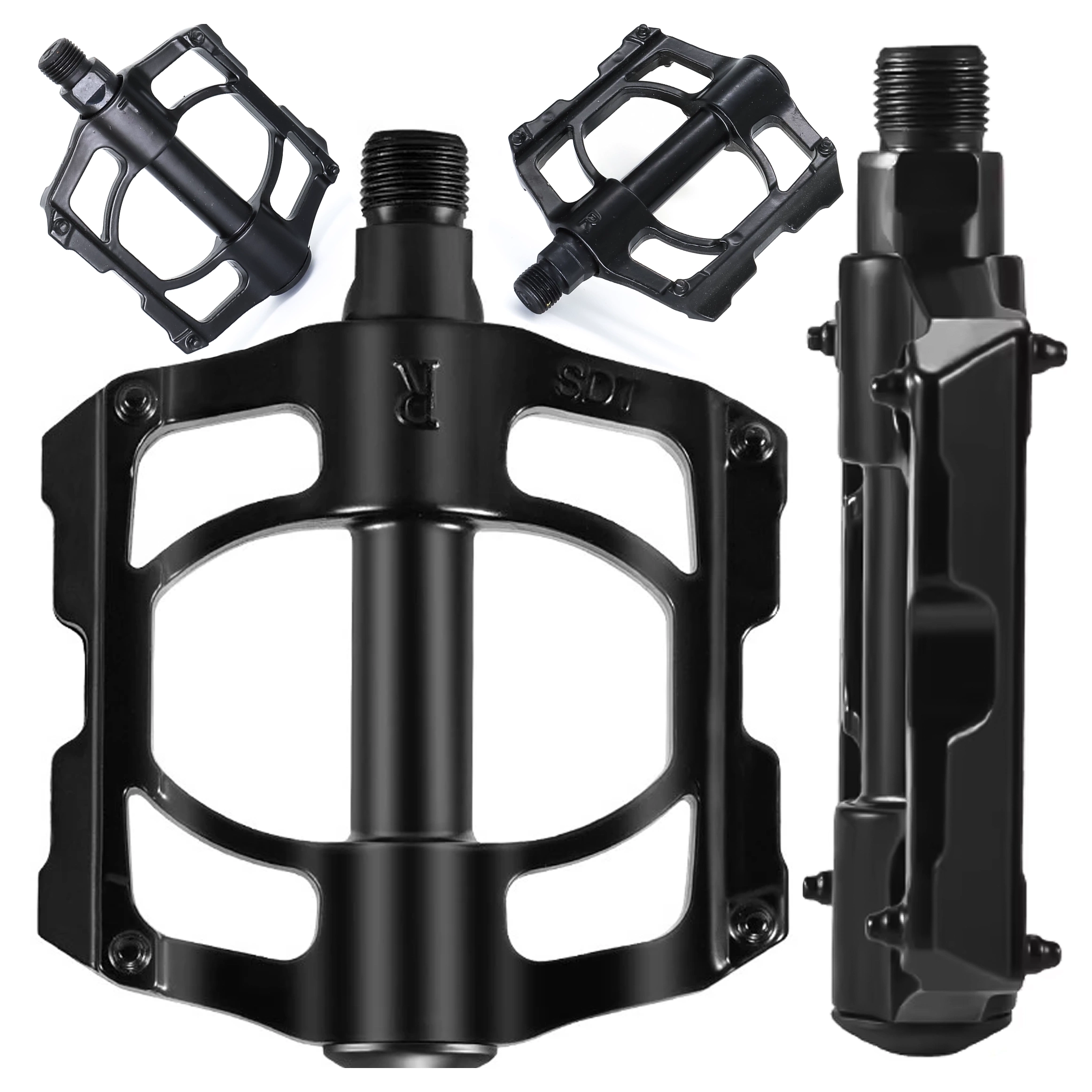 Alogy Fahrradpedale für Rennräder und Mountainbikes, MTB-Plattformpedale aus Aluminium, 2er-Set, Aluminium mit Dreifachlager, schwarz x 1