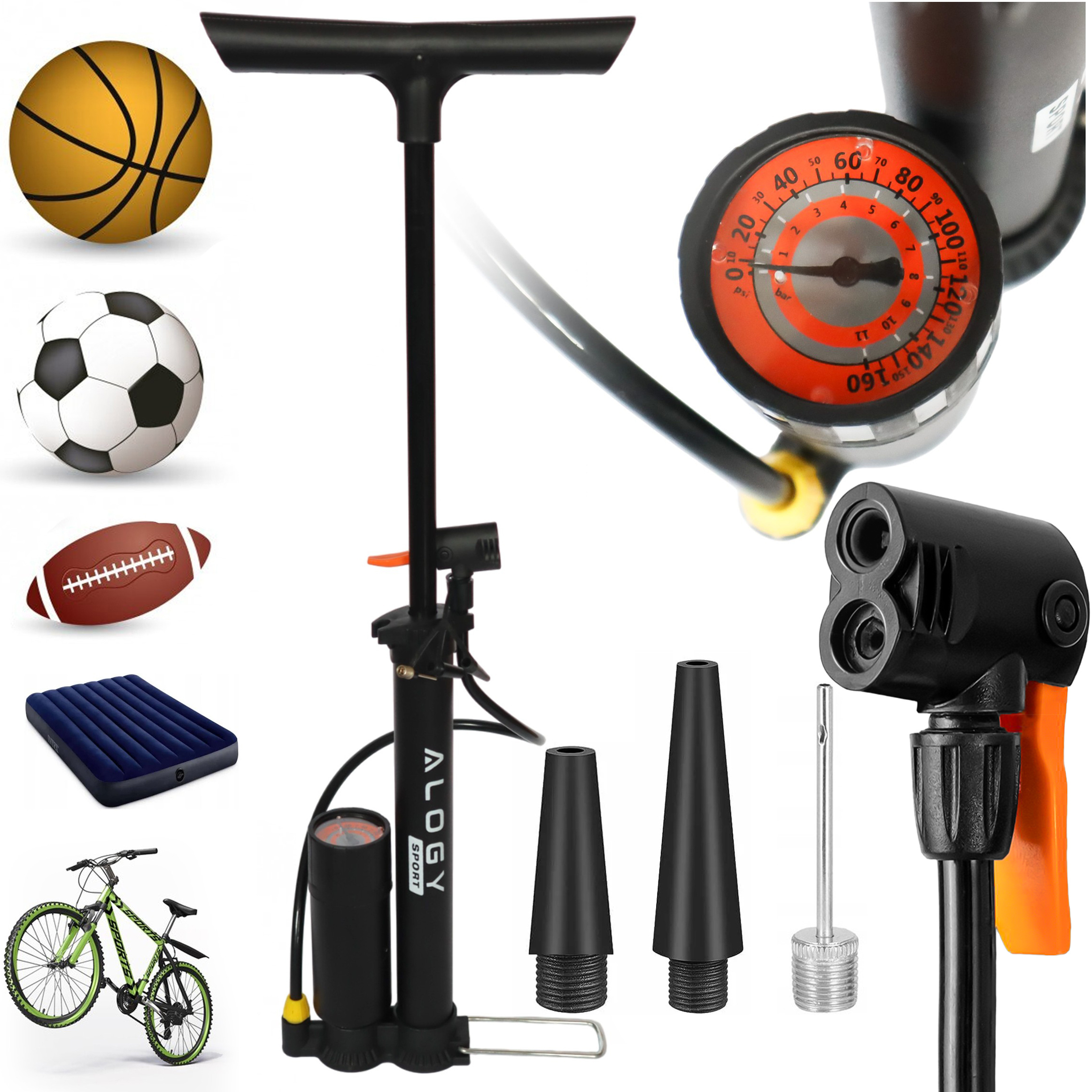 Alogy Fahrradpumpe 160 psi mit Manometer und Griff, manuell, Schwarz x 1