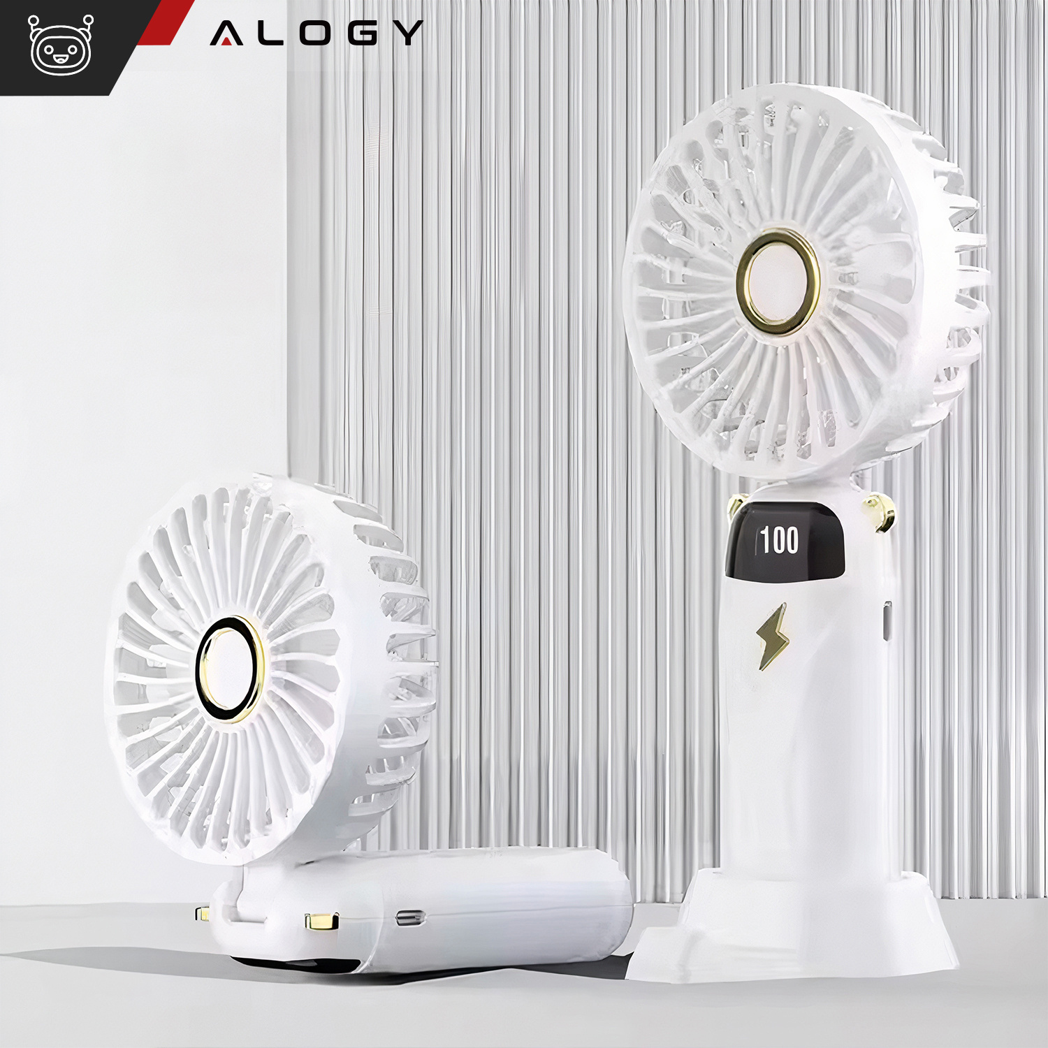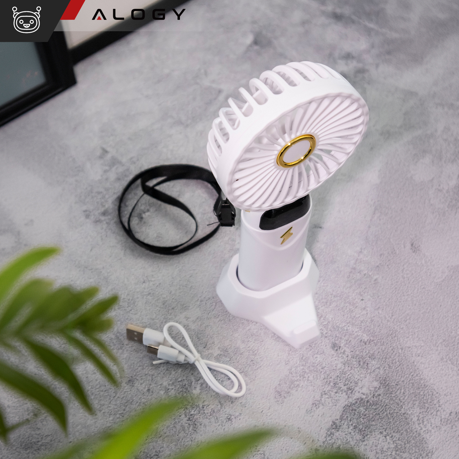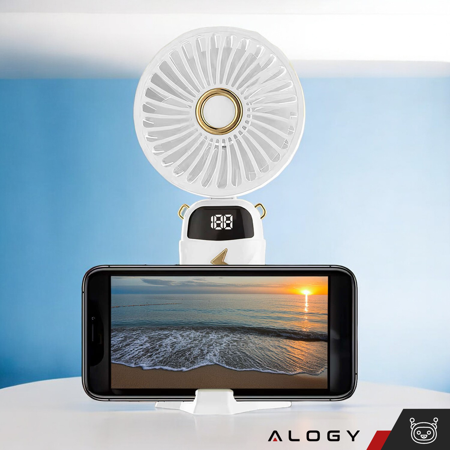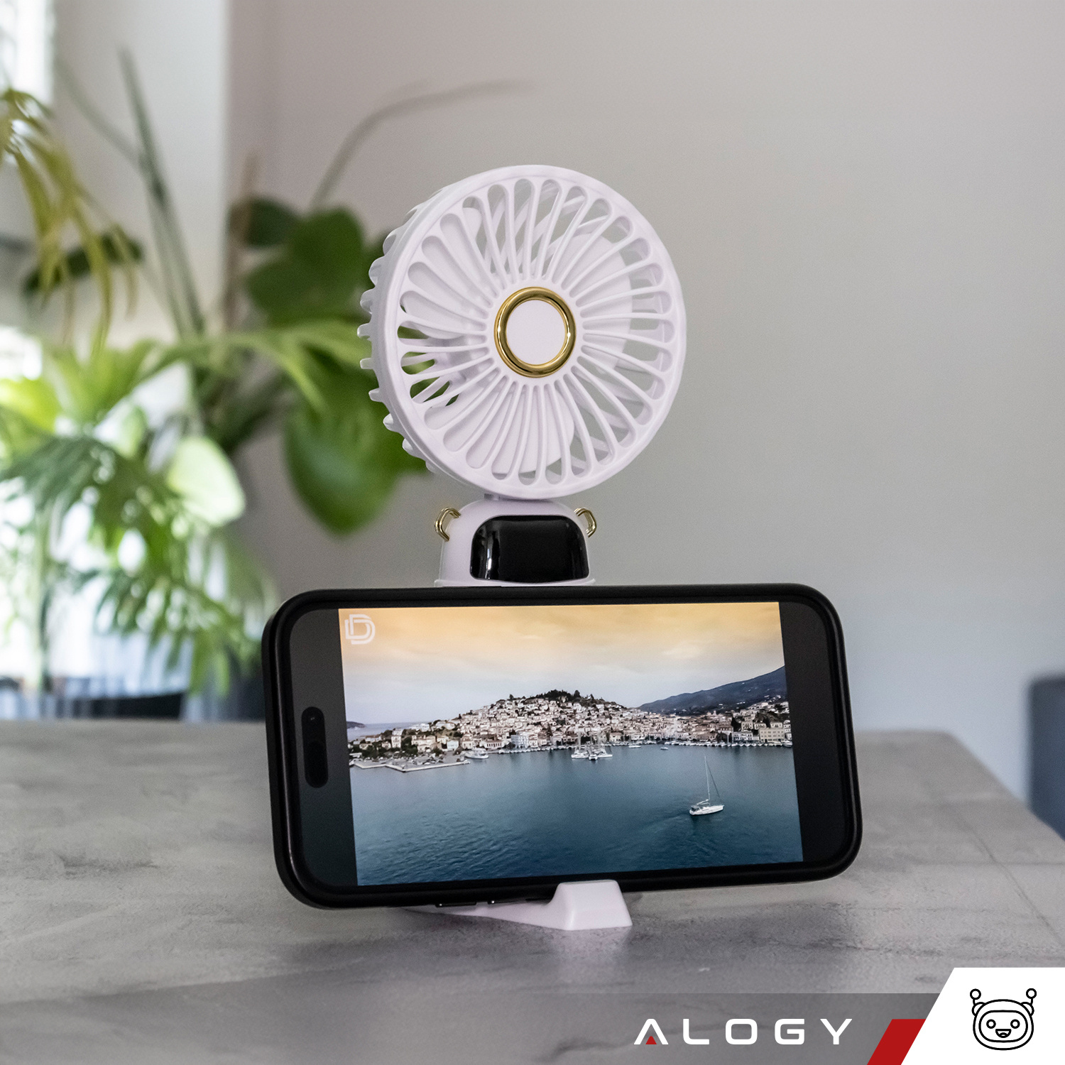 Alogy Hand-Tischventilator, kabellos, tragbar, stehend mit Telefonständer, weiß x 1