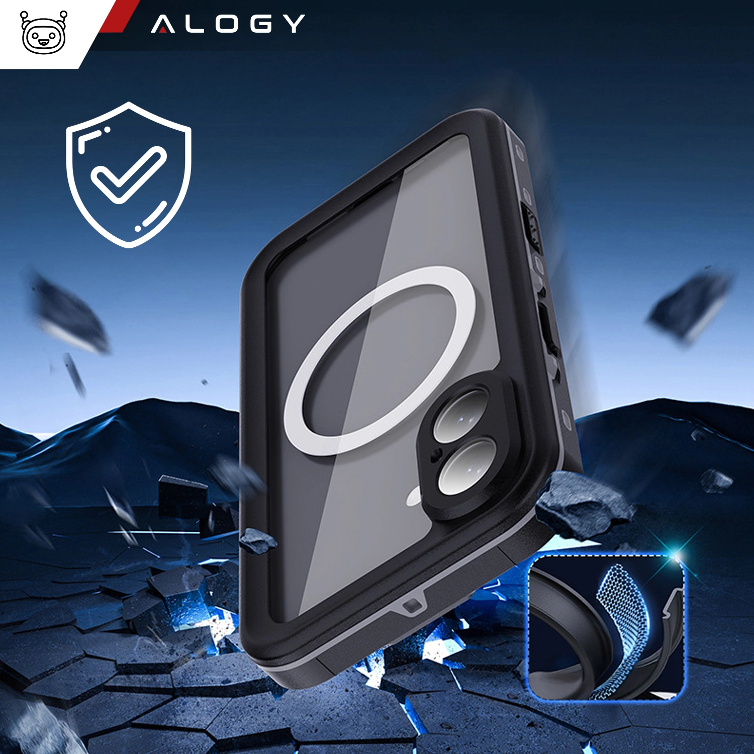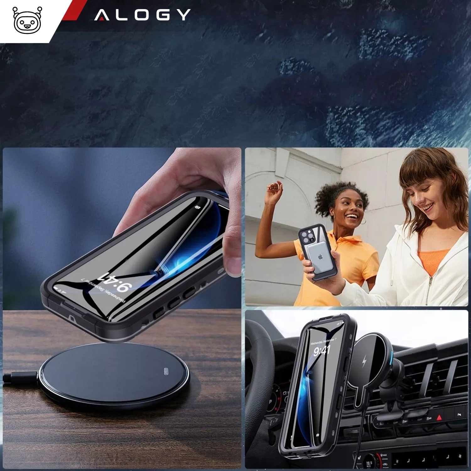 Alogy IP68 wasserdichte Hülle mit transparenter Rückseite, 360-Panzerabdeckung für MagSafe für Apple iPhone 16