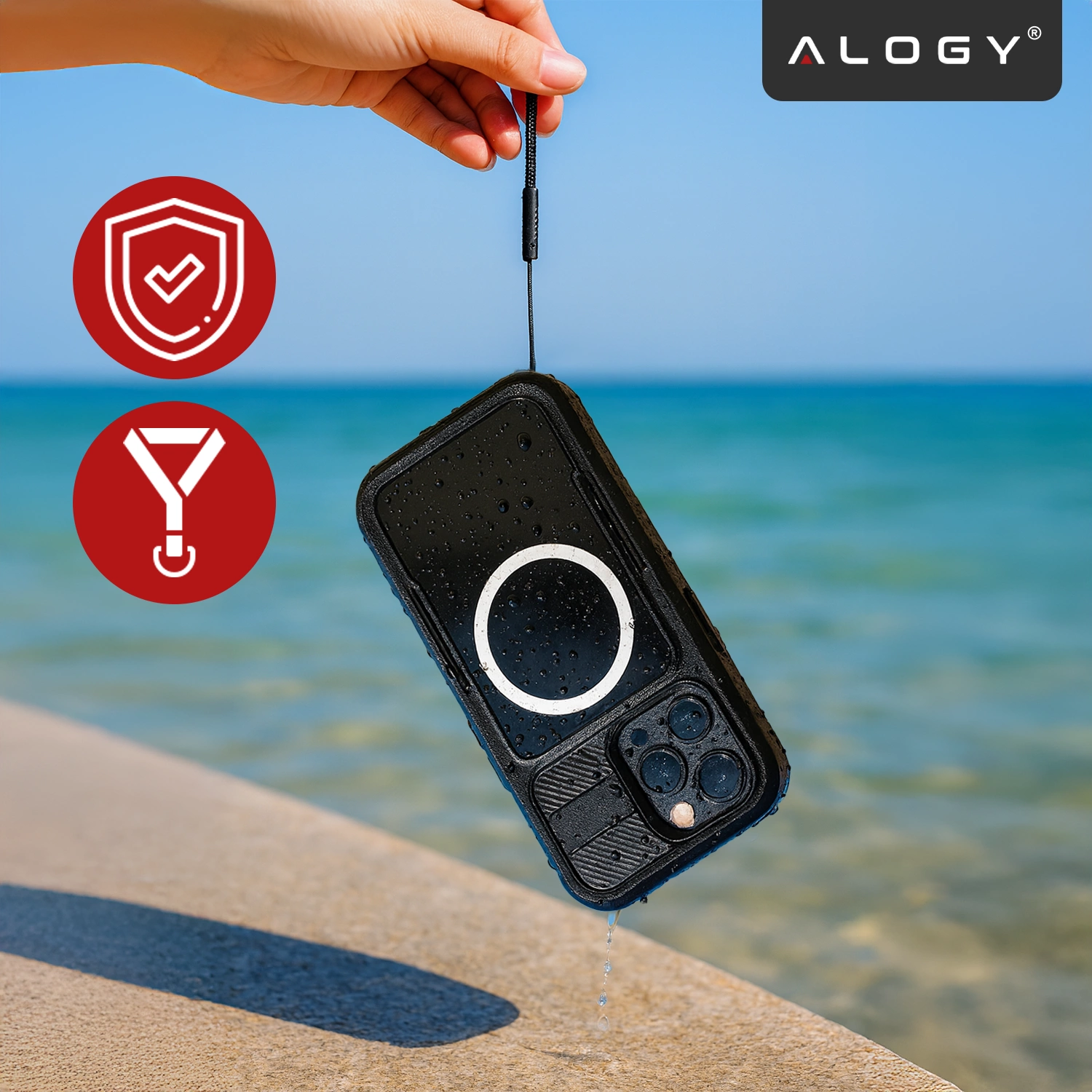 ✅ Zusätzlich zum Wasserschutz absorbiert die Alogy-Hülle Stürze , sodass Ihr Telefon auch in den schwierigsten Situationen sicher ist! Dank der soliden Konstruktion geht Ihr Gerät nicht kaputt und das integrierte Glas schützt das Display vor Kratzern und Beschädigungen, sodass Sie beruhigt sein können.