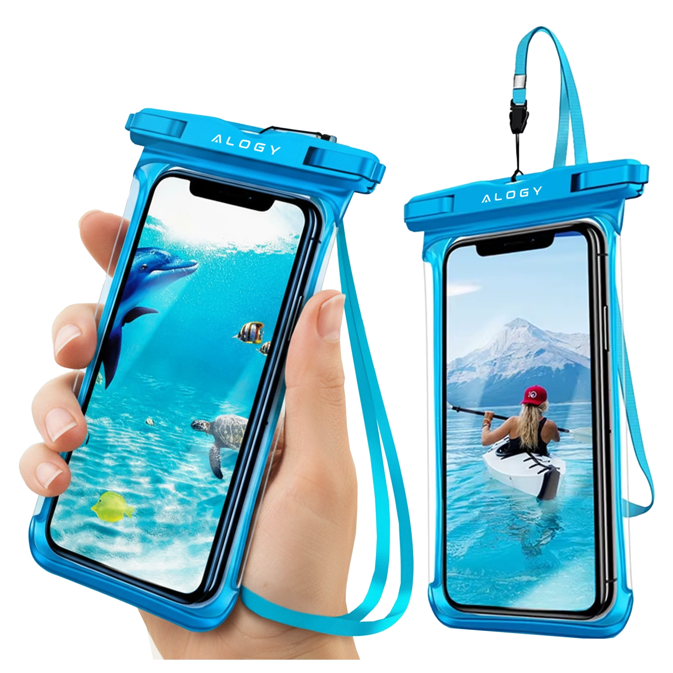 Alogy HydroShield™ Universal IPX8 wasserdichte Hülle für Smartphones bis 6,5 Zoll – Wasserdichter Schutz für Strand, Pool und Kajak, Touchscreen-Bedienung und Tragegurt – Blau