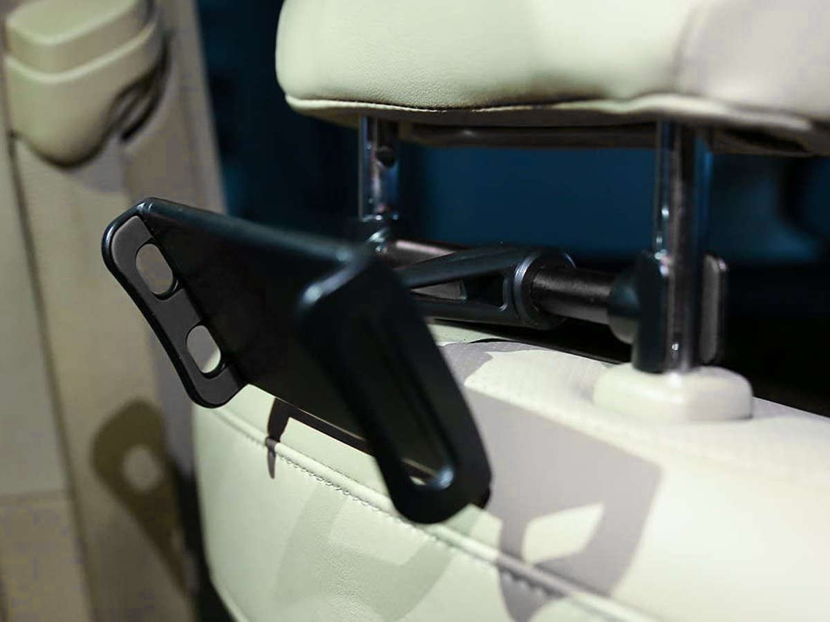 Ein universeller Tablet- oder Smartphone-Halter , der für die Montage an der Kopfstütze eines Autositzes bestimmt ist, ist ein Produkt aus hochwertigen Materialien, das eine bequemere Nutzung mobiler Geräte für sich bewegende Passagiere auf den Rücksitzen ermöglicht. Es ist ideal zum Halten von Geräten mit einer Dicke von 1,5 cm und einer Mindestbreite von 12 cm und einer maximalen Breite von 20,6 cm.