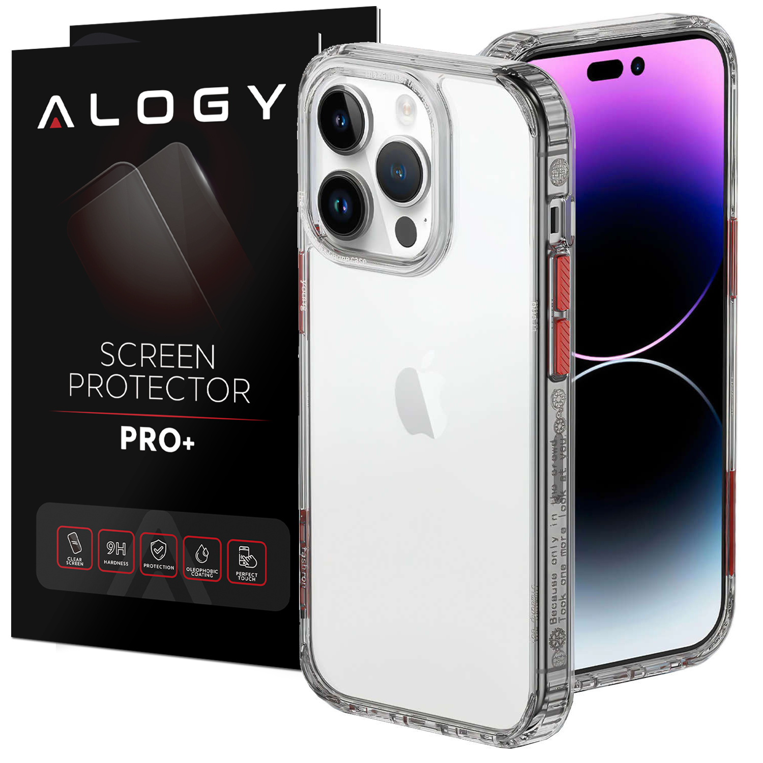 Alogy Protective Case Schutzhülle für Apple iPhone 14 Pro Max Schwarz und Klarglas x 1