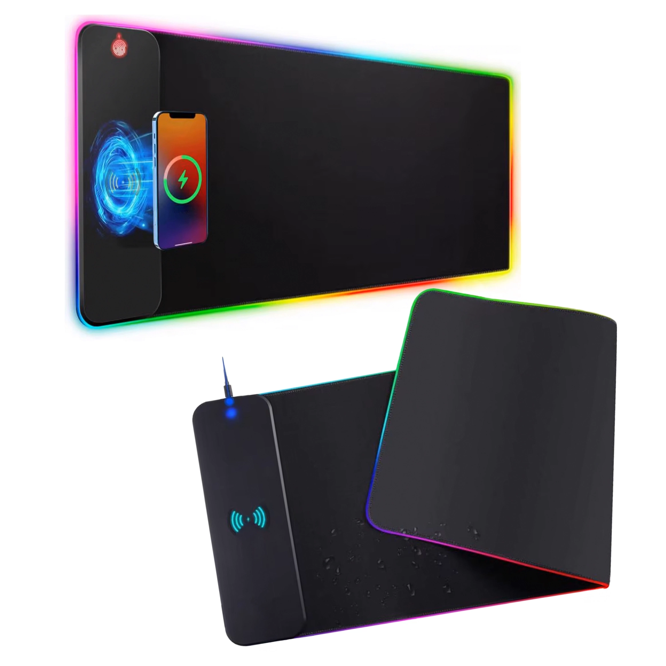 ✅ Stellen Sie sich ein XXL-Mauspad (80 x 30 cm) vor , das Platz für Tastatur und Maus bietet und gleichzeitig mit einer beeindruckenden RGB-Hintergrundbeleuchtung in 10 Modi und 7 Farben überzeugt. Dank 15-W-Qi-Wireless-Charging ist Ihr Smartphone immer einsatzbereit. Die rutschfeste Unterseite sorgt für Stabilität, und die wasserfeste, abriebfeste Oberfläche ermöglicht ein einfaches Abwischen von Schmutz und Flüssigkeiten . Dieses Produkt löst die Probleme von Kabeln, Platzmangel und Ästhetik und schafft so einen komfortablen Gaming- und Büroarbeitsplatz.