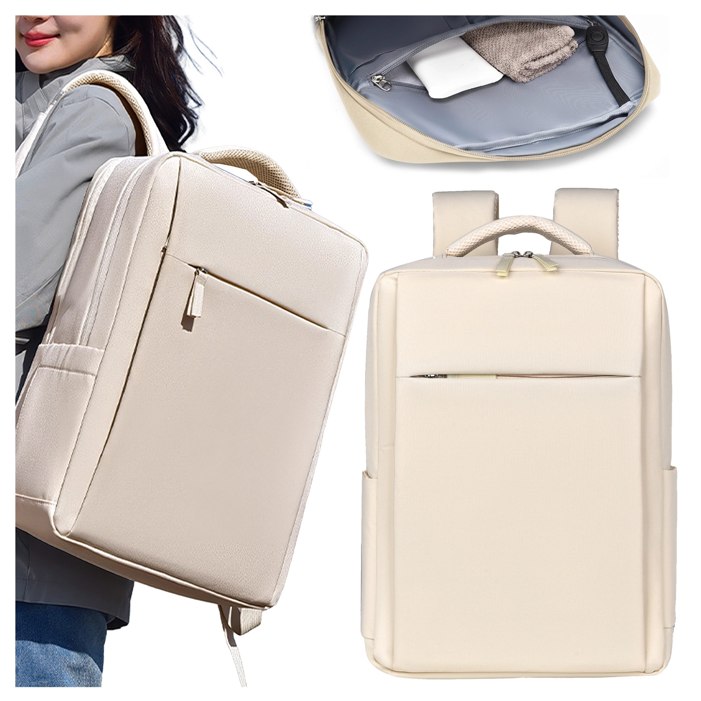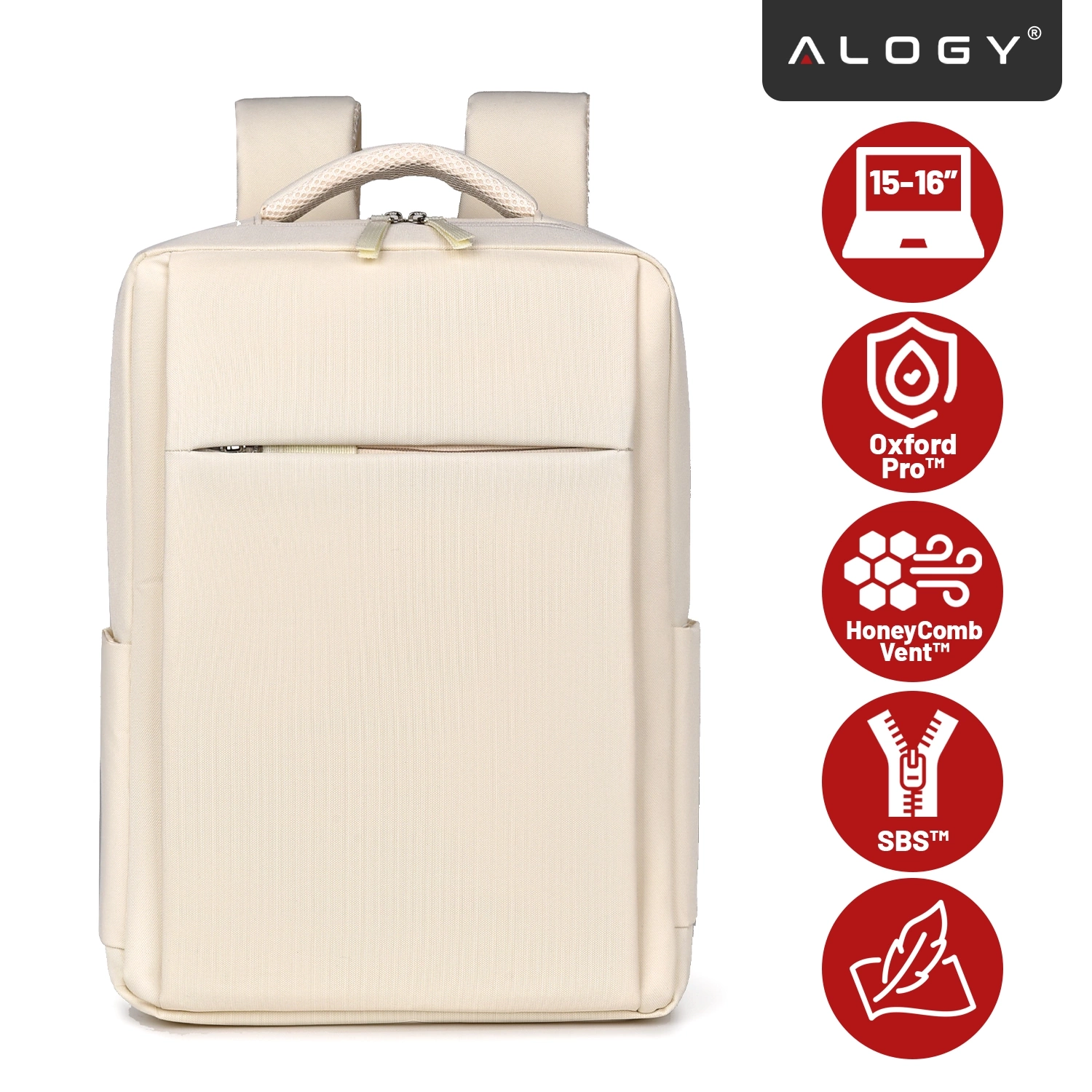 Alogy UrbanPack Pro™ Business-Rucksack für 15-16"-Laptops – Wasserdicht, stoßfest, mit Flaschenfach und Gepäckgurt – Beige x 1