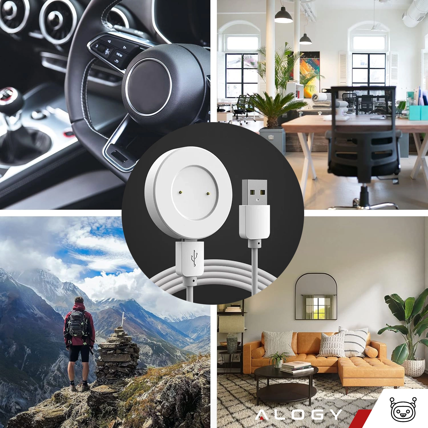 Die Station verfügt über einen starken Magneten, sodass es ausreicht, eine Smartwatch darauf zu legen, und sie beginnt sofort mit dem Aufladen. Das Ladegerät ist mit starken Kontakten ausgestattet, die unser Gerät stabil halten. Darüber hinaus verfügt die Station über ein langes Kabel, das widerstandsfähig gegen Beschädigungen ist.