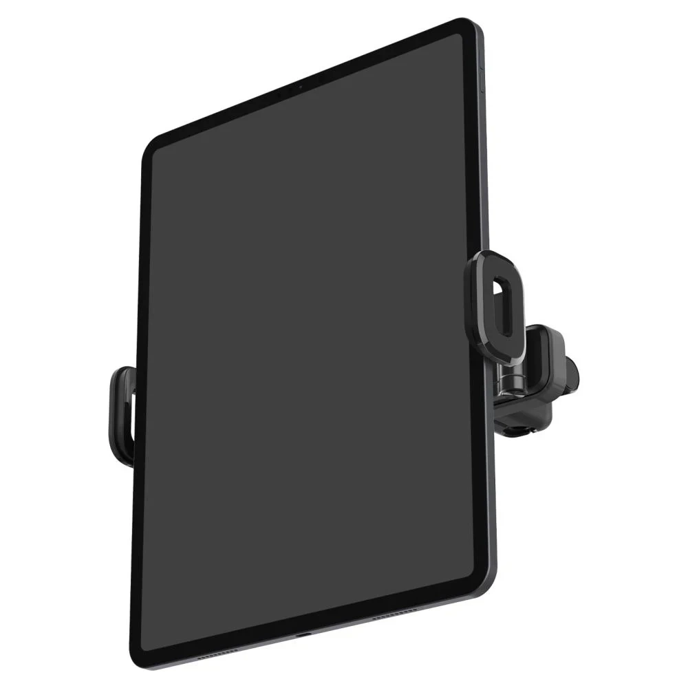 Universeller Spigen OneTap UTS45 Autohalter, montiert an der Kopfstütze des Sitzes. Bequem und einfach zu bedienen, eignet es sich perfekt für lange Reisen und bietet Unterhaltung für Sie und andere Passagiere.