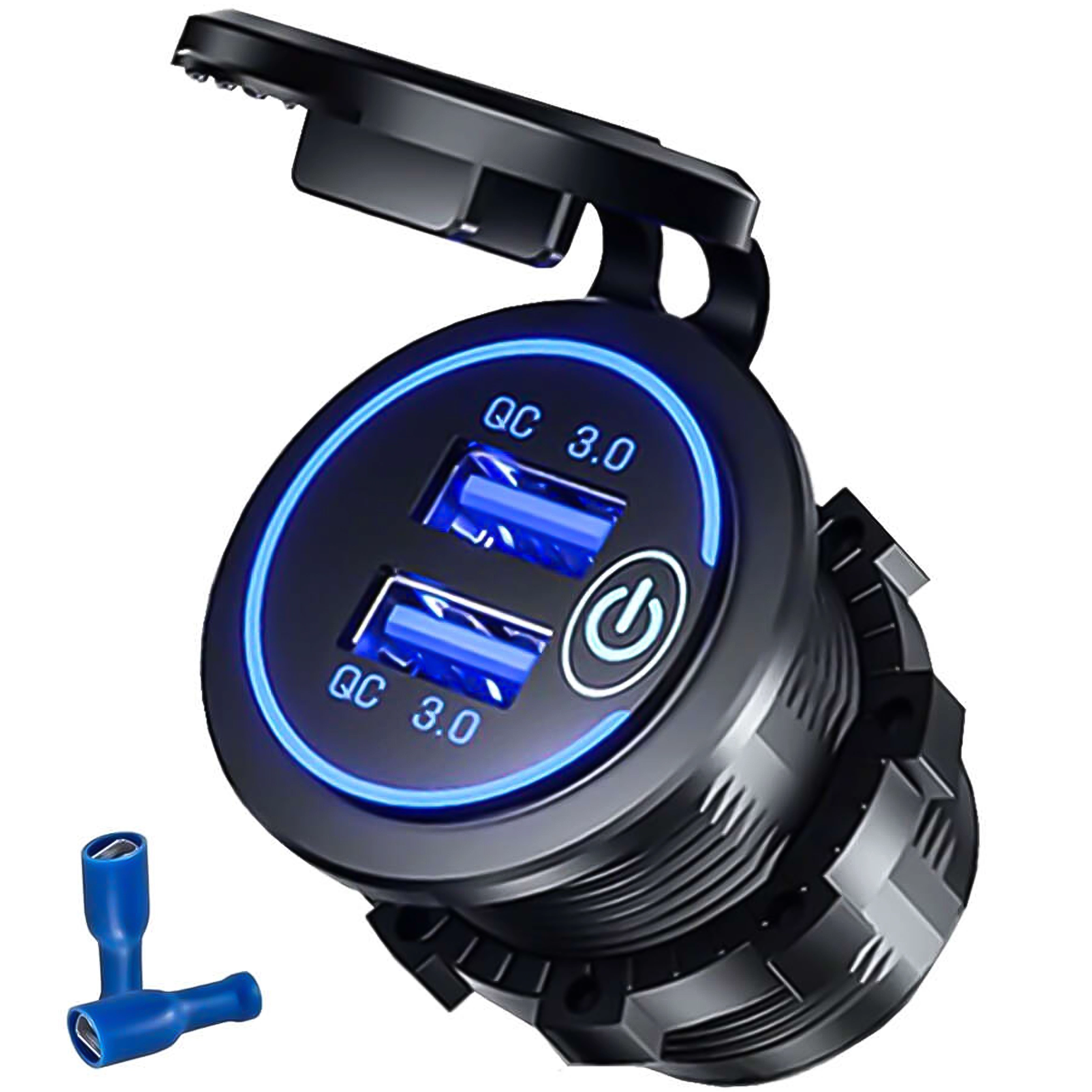 Das Auto-/Motorrad-Ladegerät Alogy ist ein hochwertiges Gerät mit einem Berührungsschalter, mit dem Sie mobile Geräte schnell über zwei USB-QC-3.0-Buchsen aufladen können.