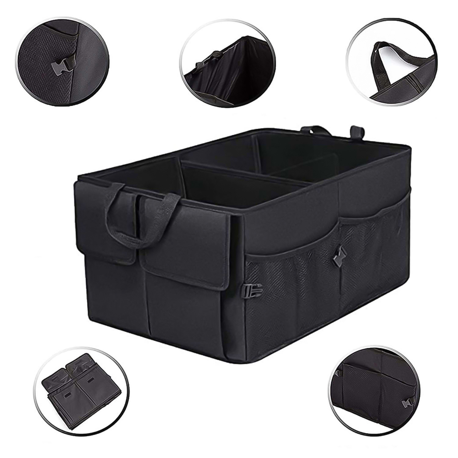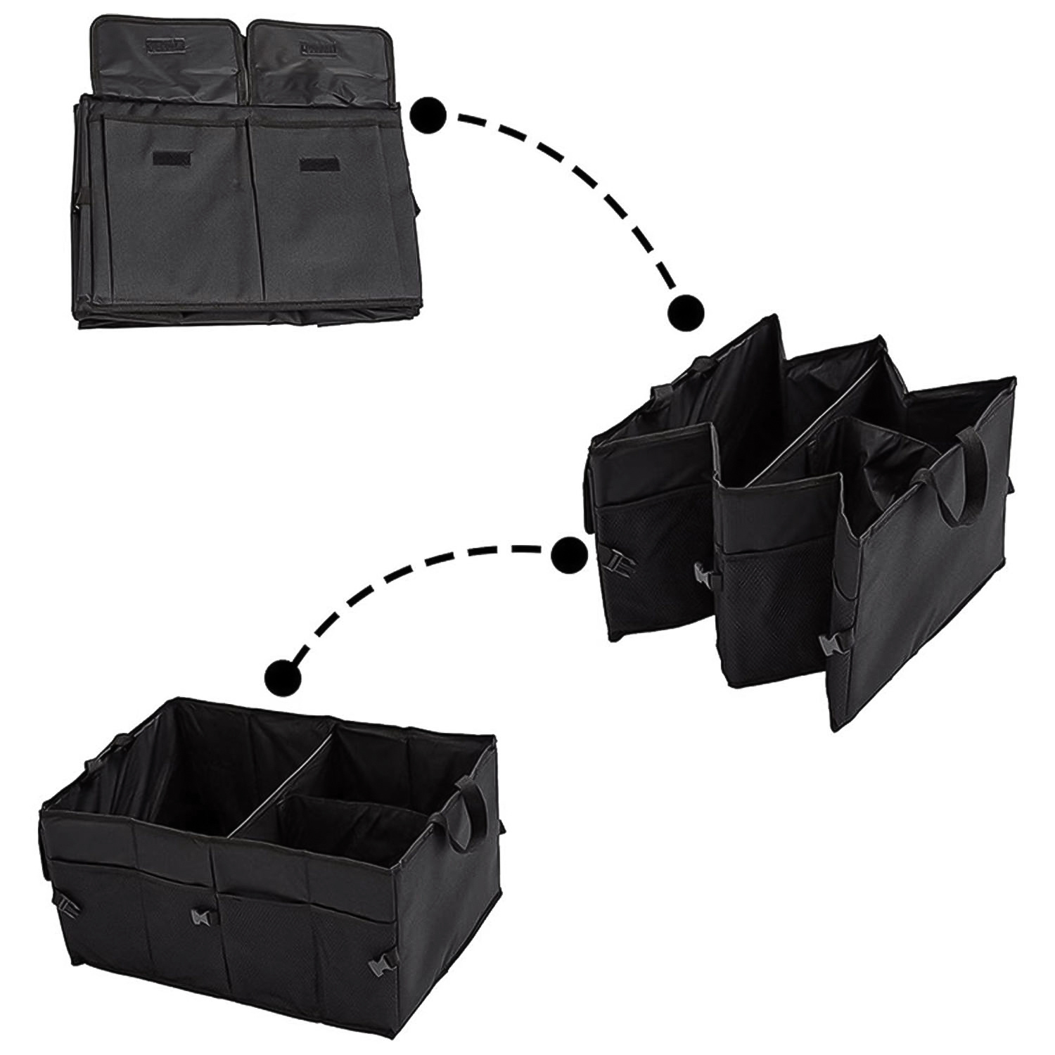 Mit dem Zubehör können Sie Unordnung und Probleme beim Auffinden der benötigten Dinge vermeiden. Der faltbare Organizer bietet problemlos Platz für verschiedene Arten von Zubehör wie Einkäufe oder Dinge für Camping, Picknick, Ausflug.