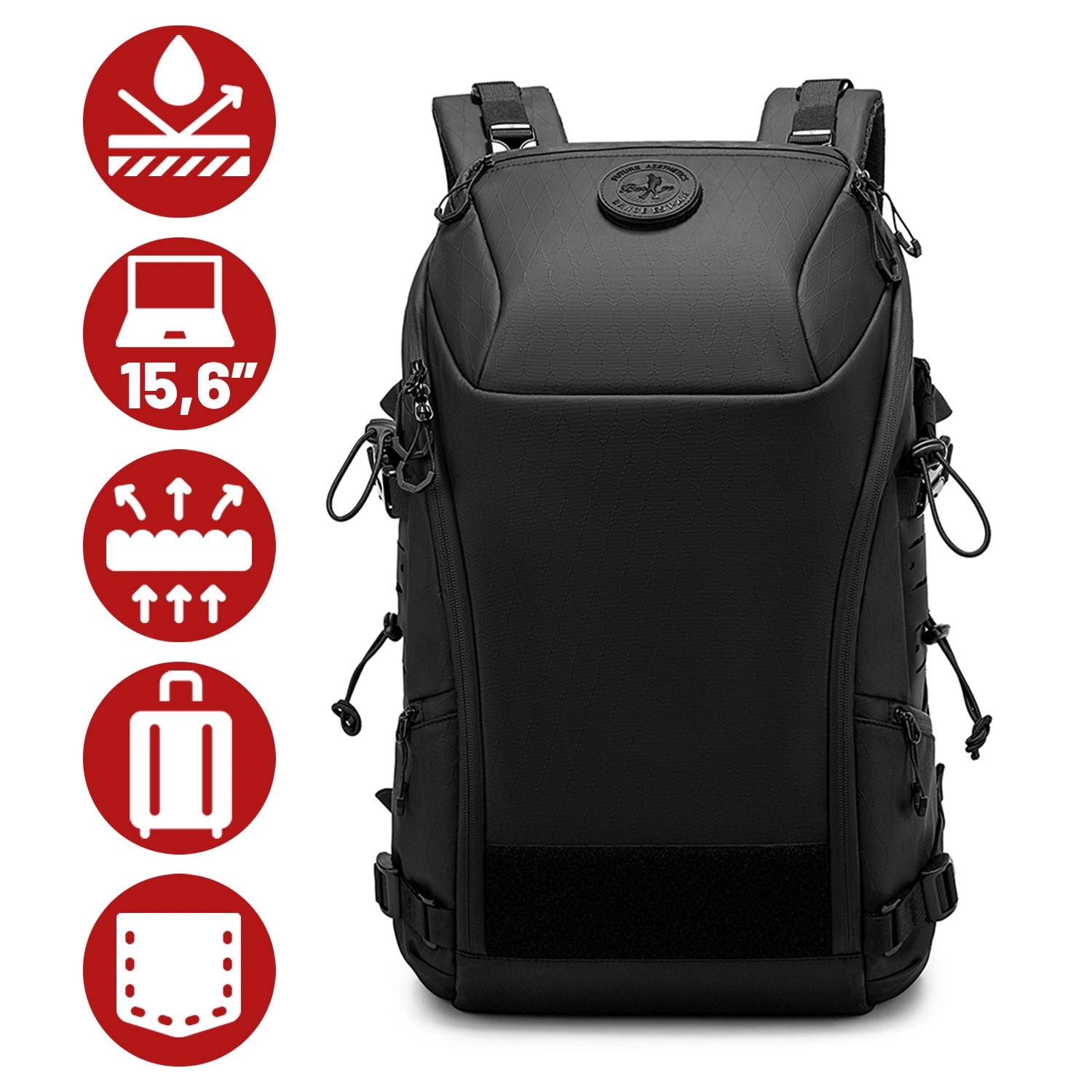 ⛔ Viele Rucksäcke saugen sich bei Regen schnell mit Wasser voll, was zu Feuchtigkeit im Inneren und dem Risiko führt, dass Ihre Ausrüstung beschädigt wird.
