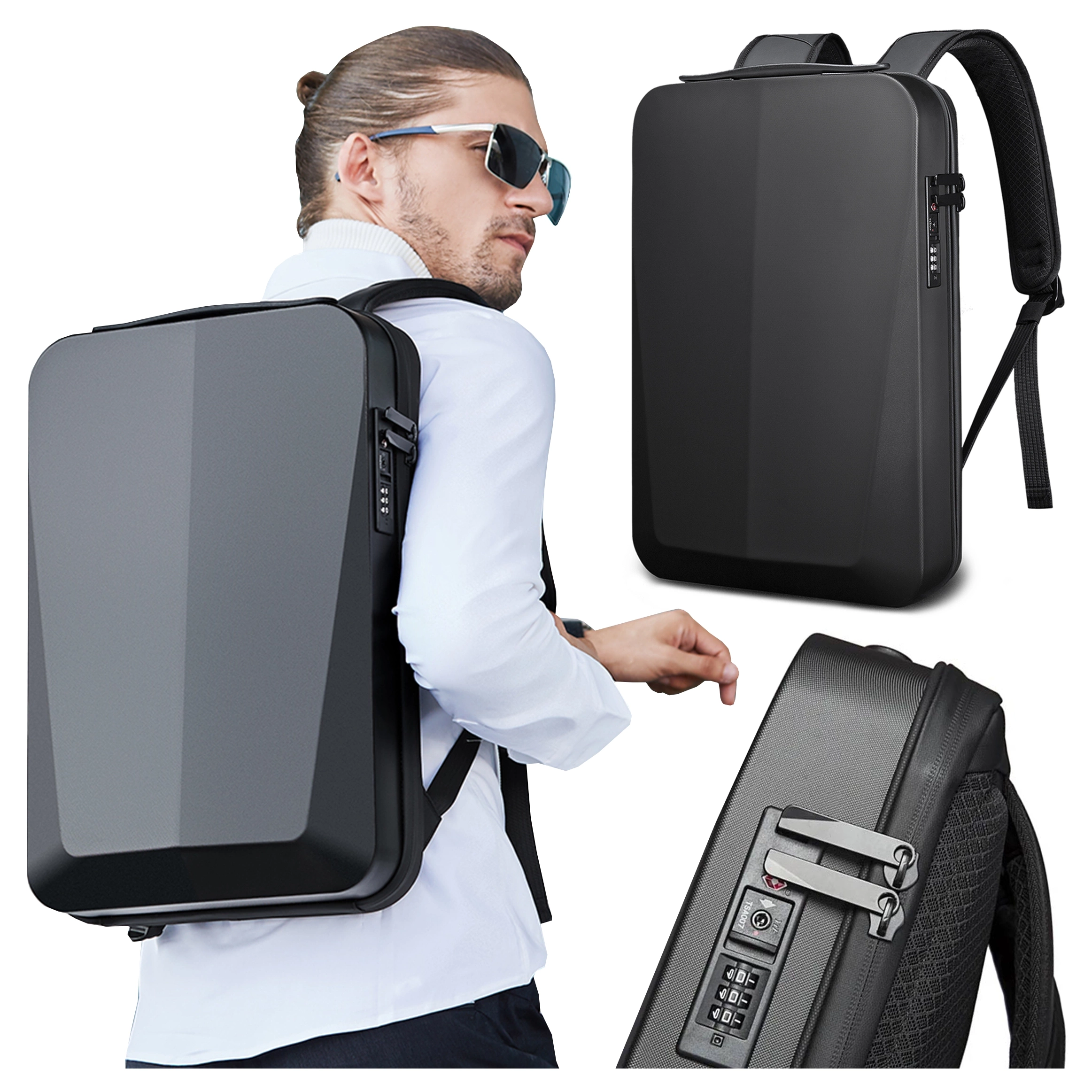 ✅ Hauptfach – mit einem Zahlenschloss gesichert. Ausgestattet mit einem gepolsterten Laptopfach mit Gurtsicherung, einem Tabletfach und Fächern für Kleinigkeiten.