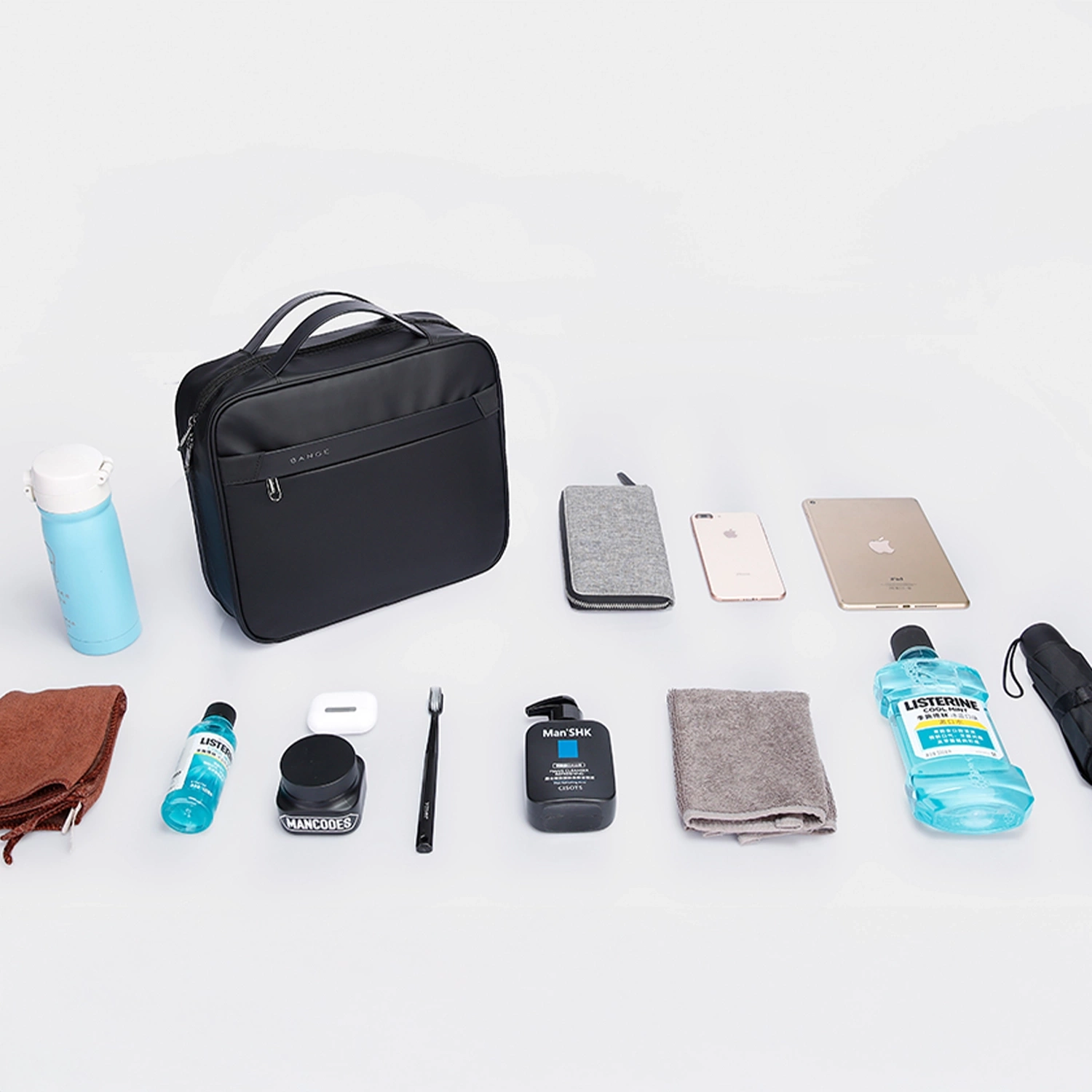 Bange Wasserdichte Kosmetiktasche 30x26x10 cm, faltbar, für Kosmetikzubehör, Reisen, Damen & Herren, Schwarz x 1