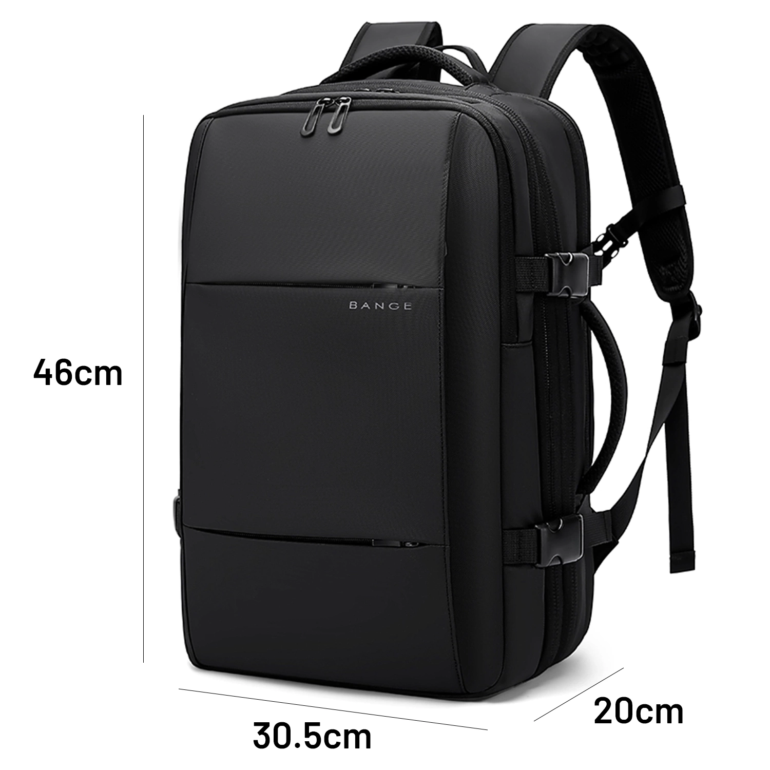Bange Wasserdichter Laptop-Rucksack für Städtetrips, 46 x 30,5 x 20 cm, erweiterbar für Flugreisen, für Damen und Herren, mit Vakuumfach und Vakuumpumpe, Schwarz x 1