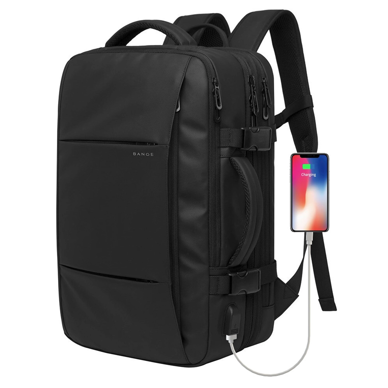 Bange wasserdichter Rucksack für 15,6-Zoll-Laptop, Stadtreisender, 45 x 30 x 16 cm, für Arbeit, Flugzeug, Herren, Damen, mit USB-Anschluss Schwarz x 1