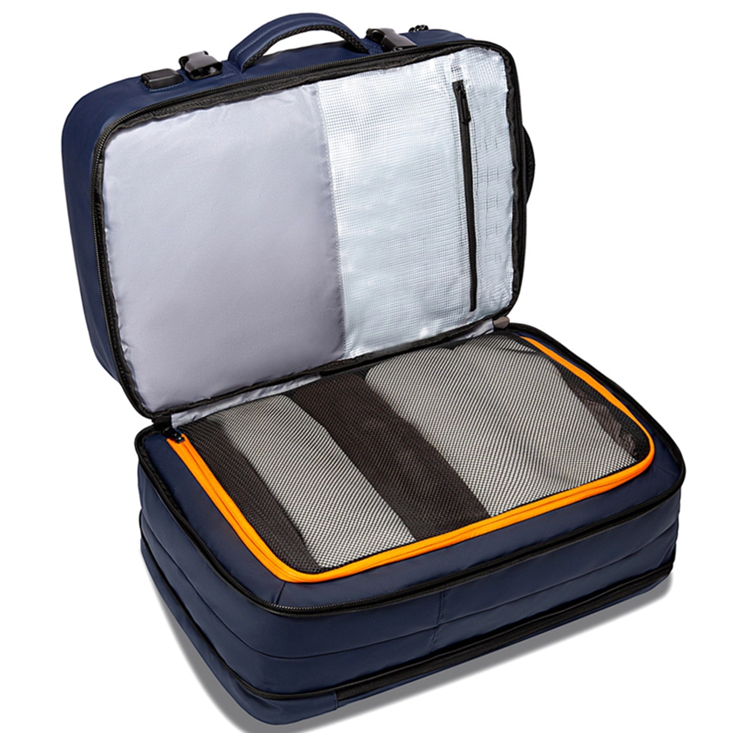 ✅ Außentaschen vorne – zwei Taschen auf der Vorderseite, verschlossen mit einem Reißverschluss. Bietet zusätzlichen Stauraum für Dinge, auf die Sie schnell und einfach zugreifen müssen .