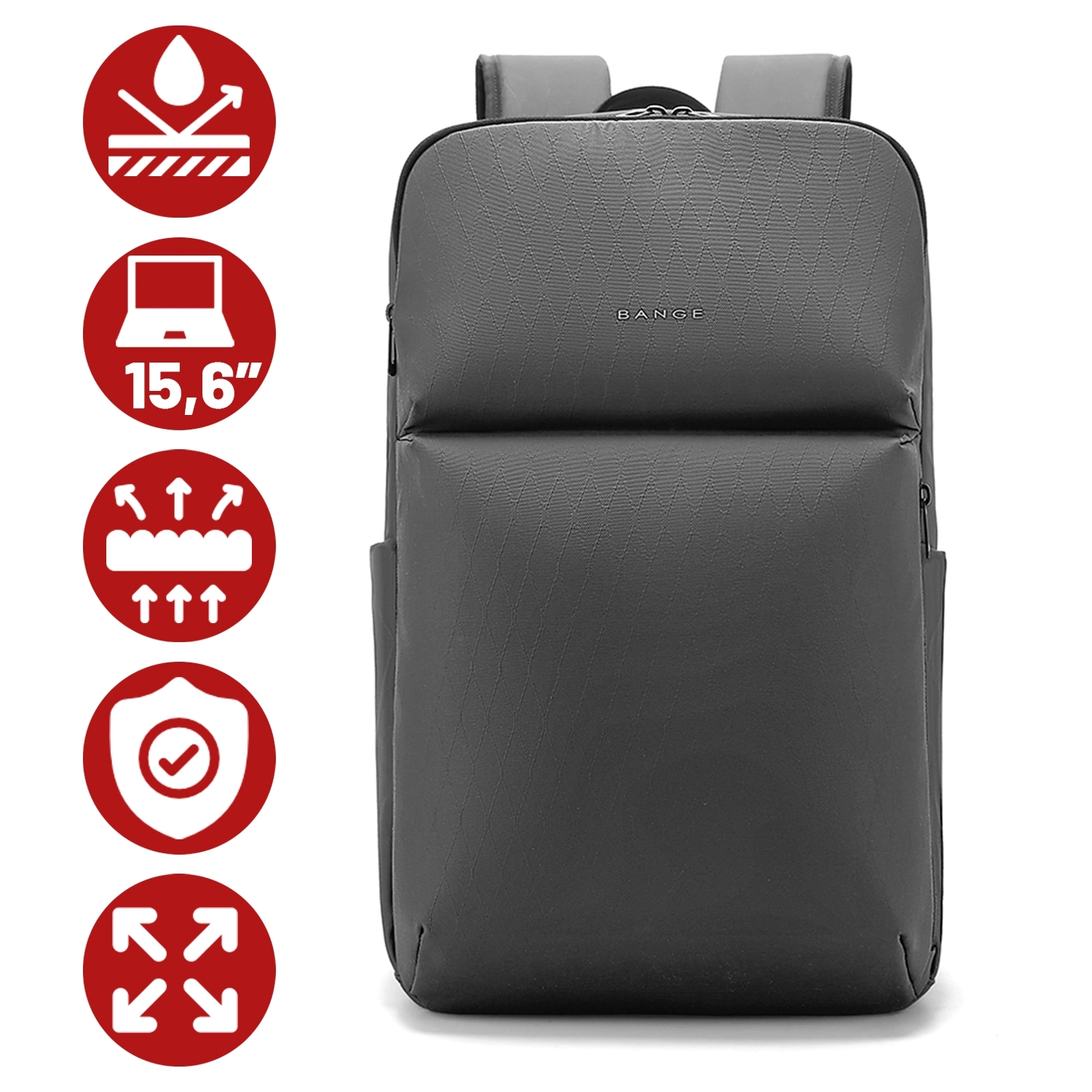 Bange wasserdichter Rucksack für 15,6-Zoll-Laptop, Stadtreisender, 45 x 30 x 16 cm, für Arbeit, Flugzeug, Herren, Damen, mit USB-Anschluss Schwarz x 1