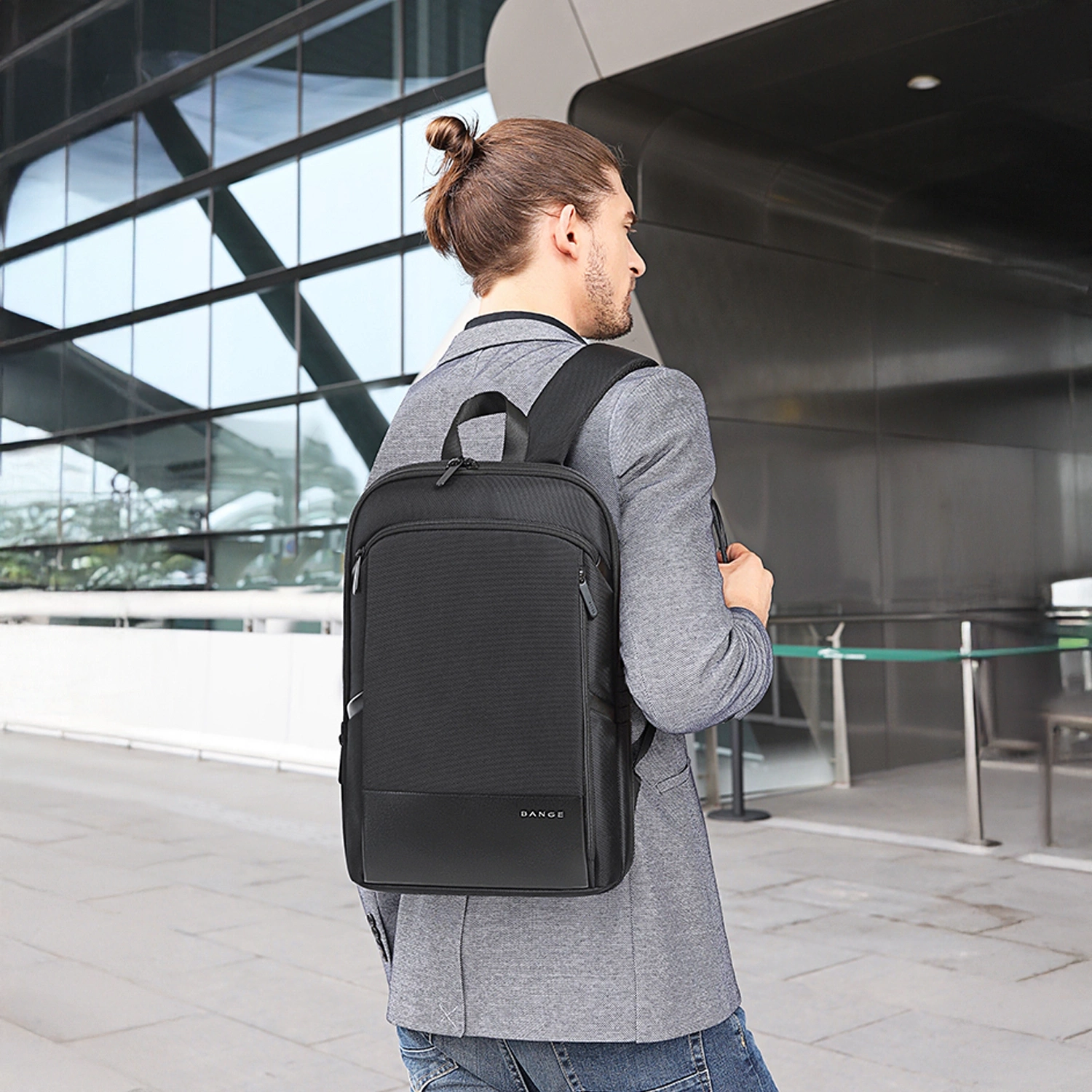 Bange Wasserdichter Rucksack für Laptops bis 15,6 Zoll, 43 x 31 x 7 cm, ideal für Stadt, Reisen, Arbeit und Flugreisen, für Damen und Herren, Schwarz x 1