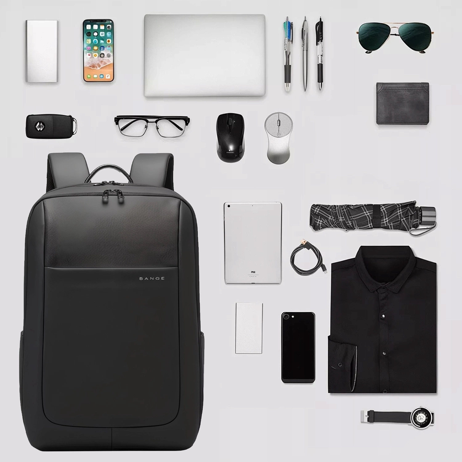 Bange Wasserdichter Rucksack Laptoptasche 15,6" Urban Travel 46x30x16 cm Für Arbeit Schule Flugzeug Herren Damen Schwarz x 1