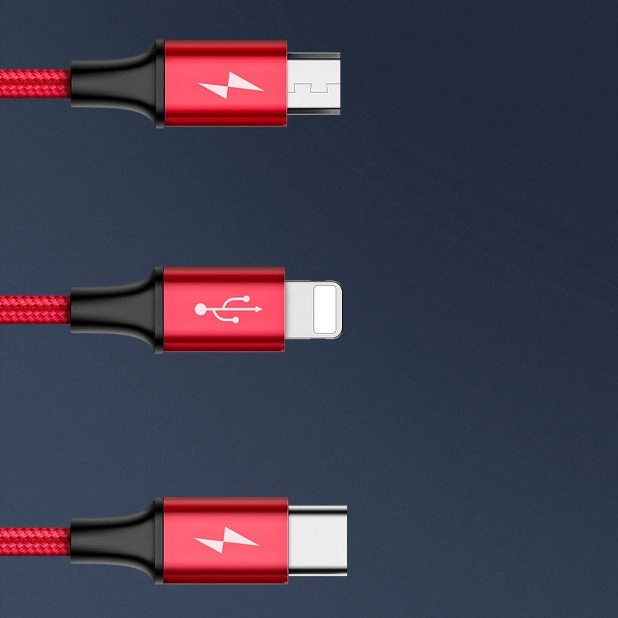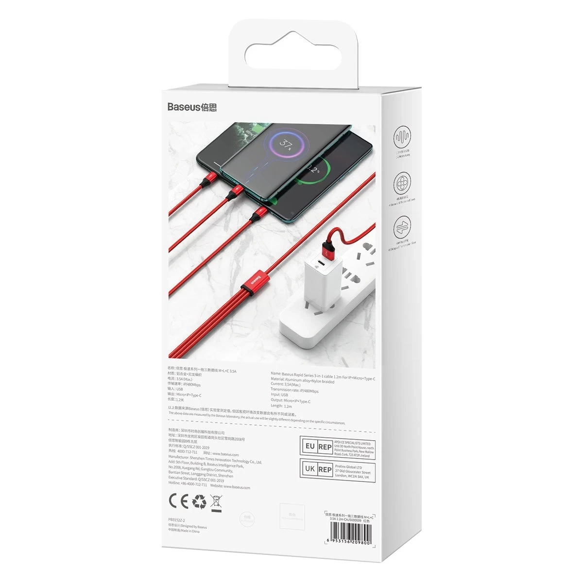 Baseus 3in1-Kabel mit USB-Anschlüssen - USB Typ C / Lightning / Micro-USB 1,2 m, 3,5 A rot (CAJS000009) x 1