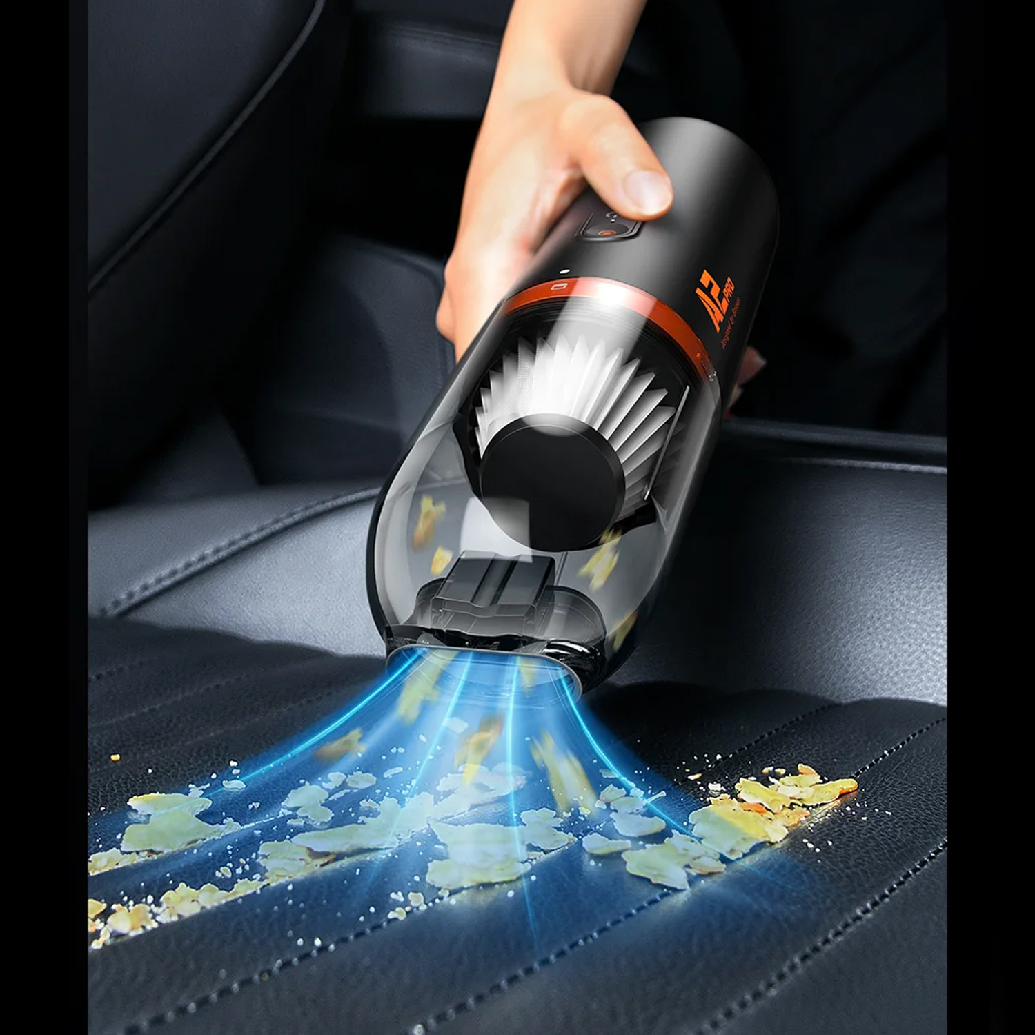 Der kabellose Autostaubsauger Baseus ist mit einem Motor ausgestattet, der mit einer Frequenz von 50.000 U/min arbeitet und nicht zu viel Lärm erzeugt (65 dB). Darüber hinaus ermöglicht Ihnen die Saugkraft von 6000 Pa sowohl größere als auch kleinere Verunreinigungen gründlich zu entfernen.
