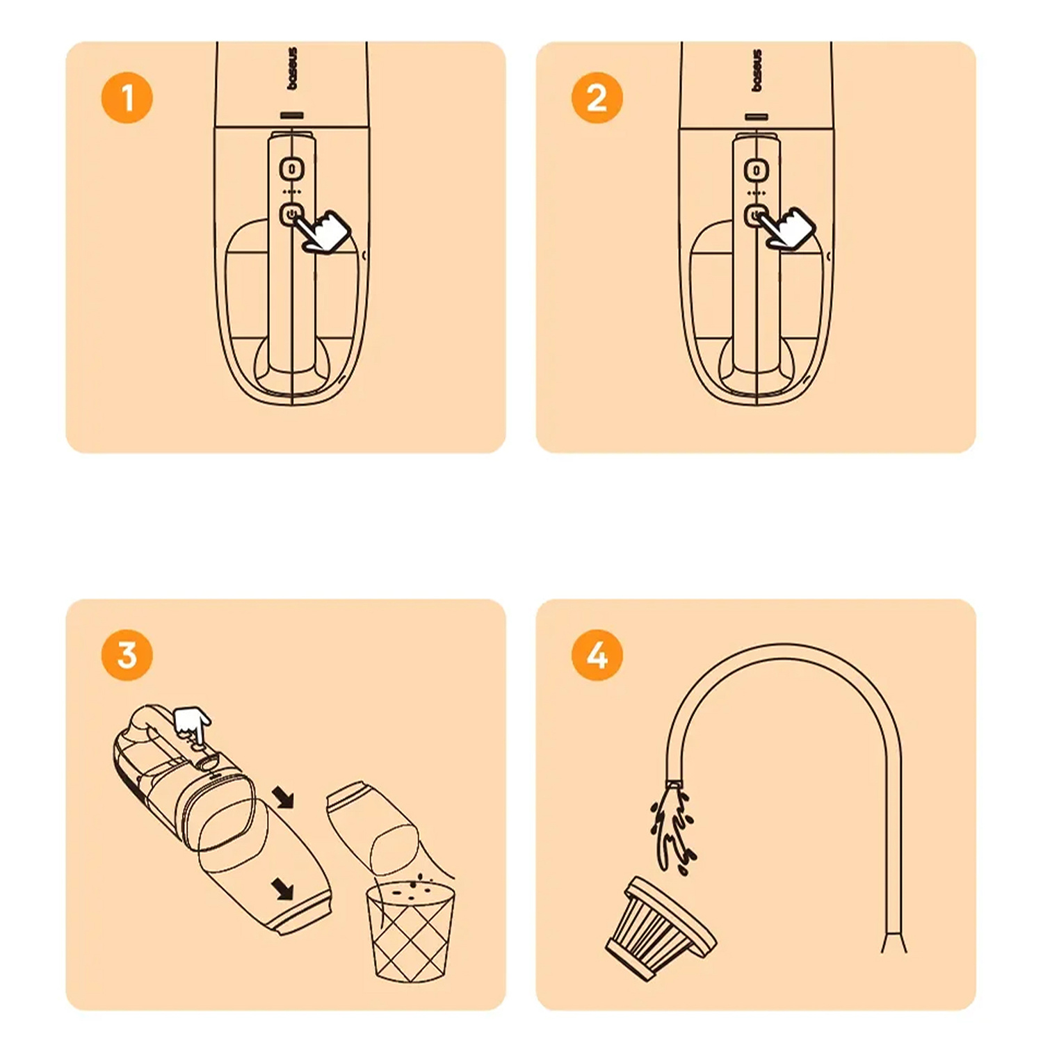 Baseus Ap02 wurde mit Blick auf Ihren Komfort entwickelt. Der Geräuschpegel des Staubsaugers überschreitet 72 dB nicht, sodass Sie leise reinigen können, ohne Ihr Zuhause zu stören. Dank des 1000-ml-Staubbehälters müssen Sie die Reinigung nicht unterbrechen, um den Behälter zu leeren. Darüber hinaus erleichtert Ihnen eine spezielle Taste das Entleeren.