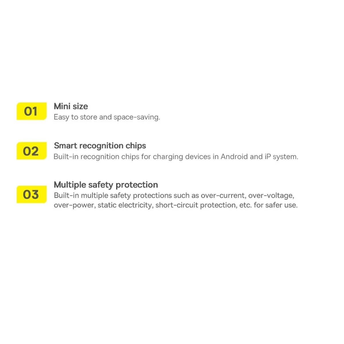 Das Baseus-Ladegerät ist ein äußerst nützliches Gerät. Schnellladen ist einer der Hauptvorteile. Im Inneren befindet sich auch ein Chip, dessen Hauptaufgabe es ist, dafür zu sorgen, dass die Geräte nicht überladen werden. Die kleinen und handlichen Abmessungen des Ladegeräts ermöglichen es Ihnen, es immer bei sich zu haben.