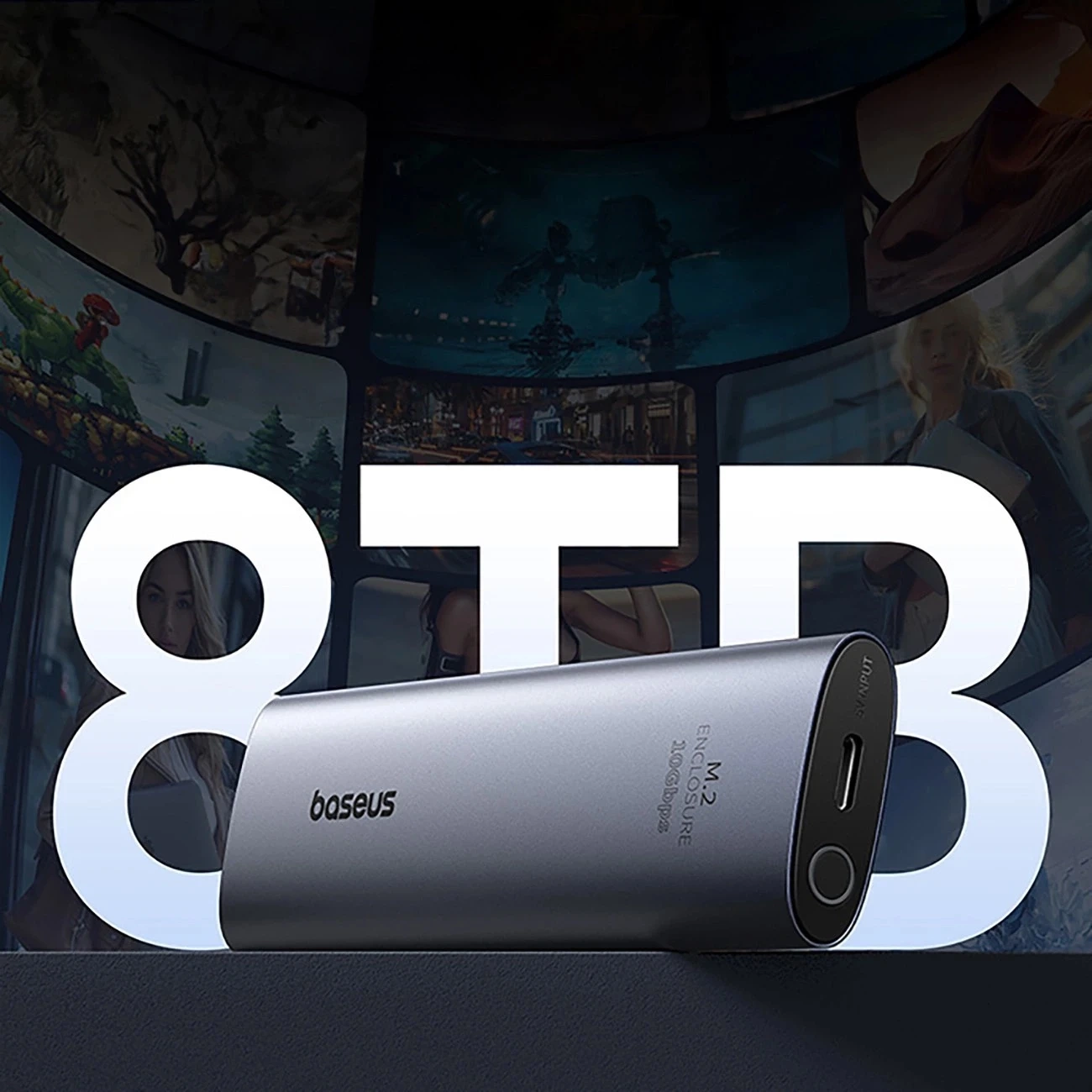 Baseus FlyJoy M.2 NVMe 10 Gb/s SSD-Gehäuse – Graues Gehäuse bis zu 8 TB x 1
