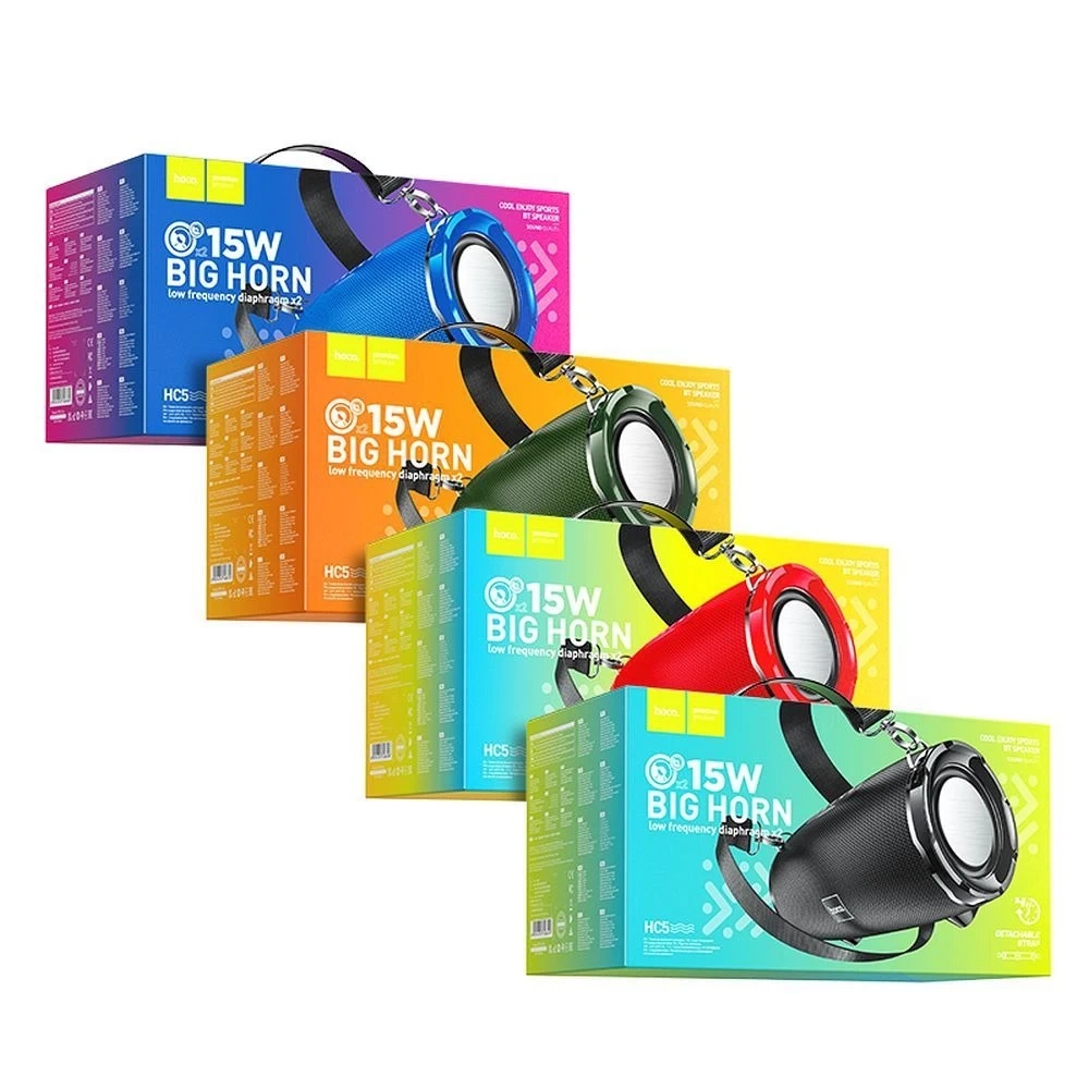 Hoco HC5 ist ein vielseitiger, tragbarer Bluetooth-Lautsprecher für kraftvollen Klang und Mobilität. Er wird Sie nicht nur mit seiner Lautstärke (bis zu 2x15 W) überraschen, sondern auch mit der Anzahl der Funktionen, die in sein kompaktes Gehäuse passen.