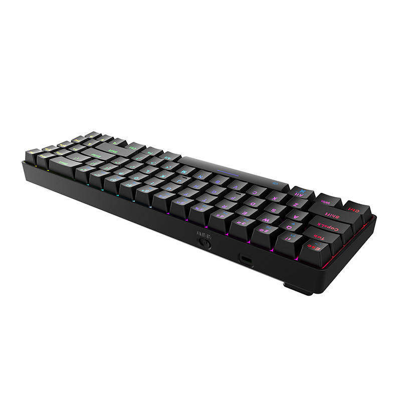 Mithilfe der um 90° drehbaren Magnetfüße können Sie die Tastatur um 3,5 mm anheben. Die Kraft, die benötigt wird, um die roten Schalter zu aktivieren, beträgt nur 45 g und der Aktivierungspunkt liegt bei 2 mm. Die Hintergrundbeleuchtung der Esc-Taste liefert Ihnen die wichtigsten Informationen über den Status des Geräts. Schlüssel mit Lasergravur aus PBT sind abriebfest und verschleißfest. Die Tastatur ist außerdem äußerst kompakt – sie nimmt nicht viel Platz auf Ihrem Schreibtisch ein.