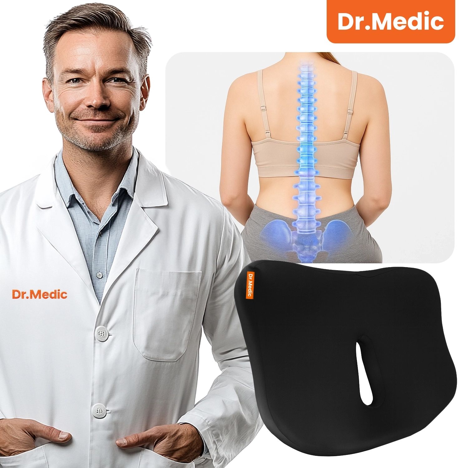 Das orthopädische Kissen Dr. Medic SeatRest™ wurde entwickelt, um dieses alltägliche Problem zu lösen. Gefüllt mit Memory-Schaum , passt es sich perfekt Ihrer Körperform an und entlastet Ihre Wirbelsäule . Die ergonomische Form stützt das Becken und reduziert den Druck auf das Steißbein – für stundenlangen Komfort. Die rutschfeste Unterseite sorgt dafür, dass das Kissen an Ort und Stelle bleibt, und der abnehmbare Bezug ist leicht zu waschen.