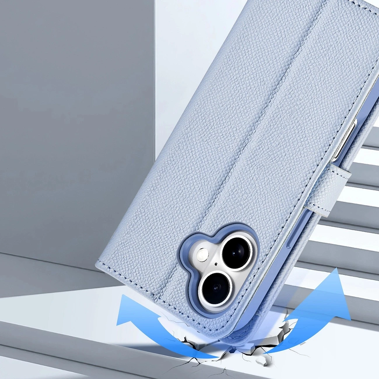 Dux Ducis Lawa iPhone 16 Lederhüllen mit blauem MagSafe Wallet x 1