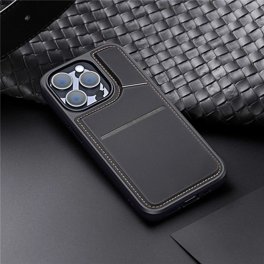 Die Dux Ducis Rafi II Mag-Hülle ist eine fortschrittliche Lösung für Smartphones, kompatibel mit MagSafe. Es verfügt über zwei Kartenfächer, ein RAFID-Schloss und einen verstellbaren Ständer.